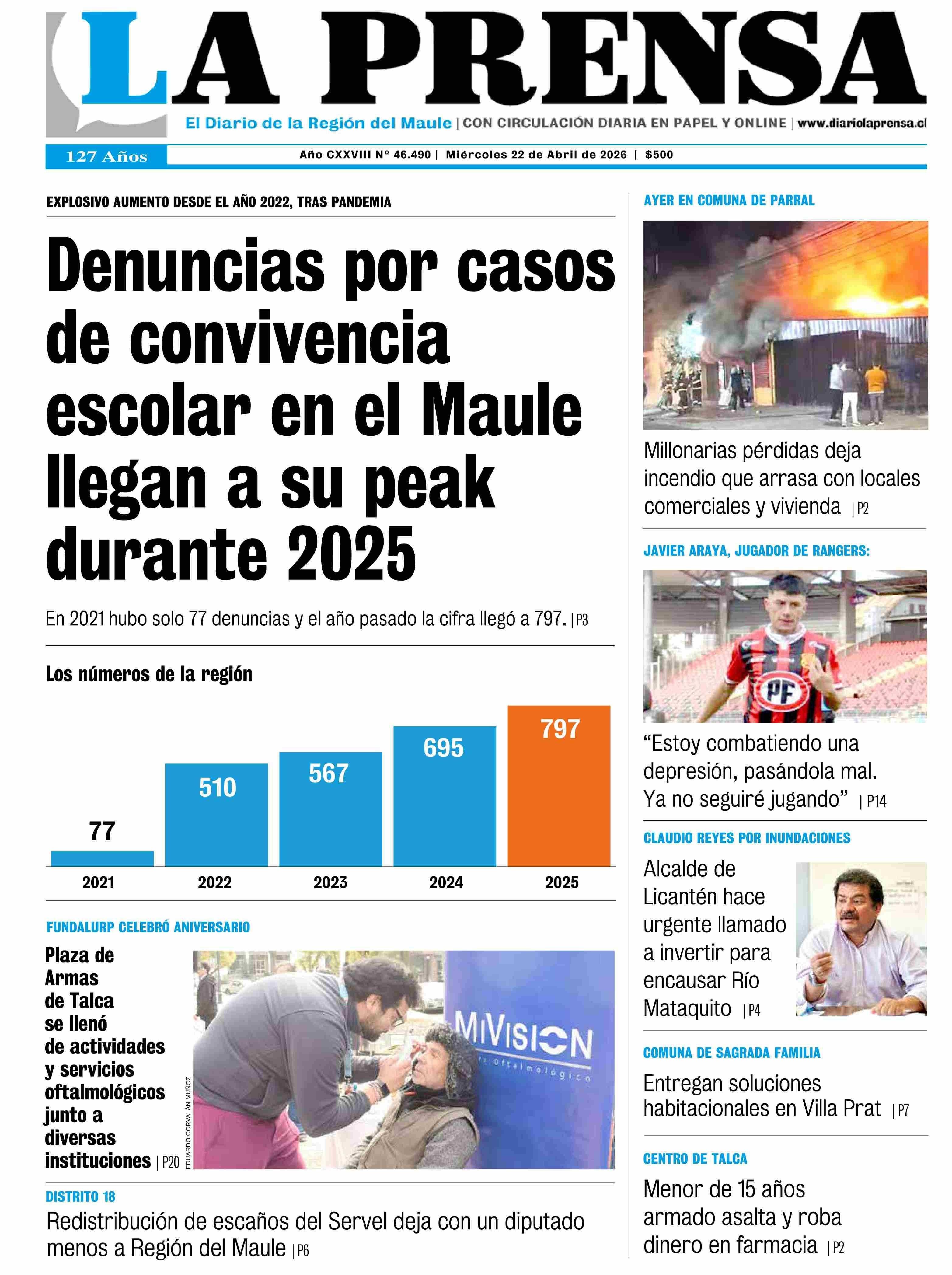 PORTADA LA PRENSA DE CURICÓ - CHILE