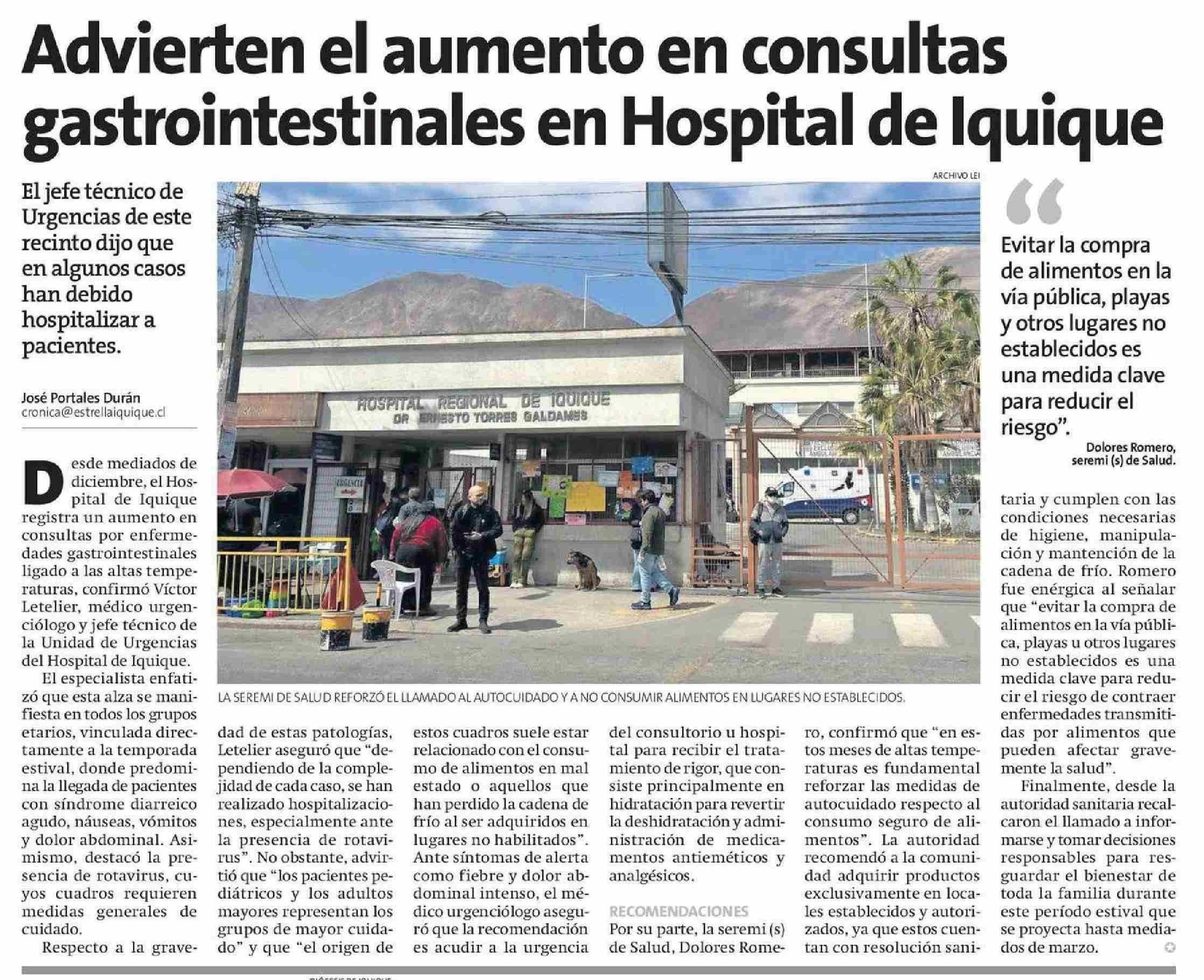 Advierten el aumento en consultas gastrointestinales en Hospital de Iquique