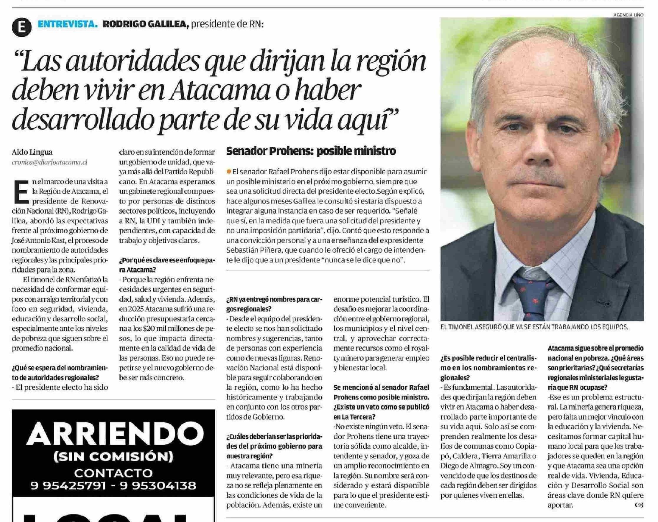 "Las autoridades que dirijan la región deben vivir en Atacama o haber desarrollado parte de su vida aquí"
