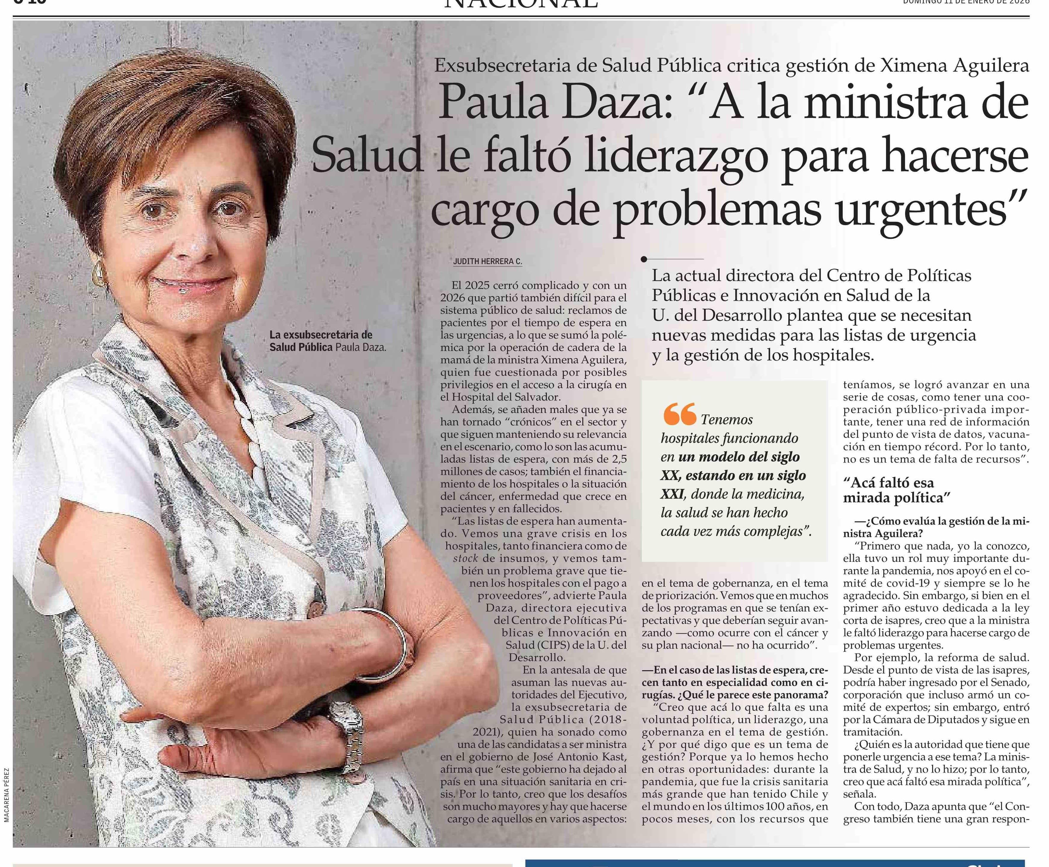 Paula Daza: “A la ministra de Salud le faltó liderazgo para hacerse cargo de problemas urgentes”