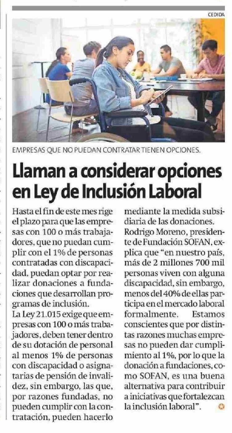 Llaman a considerar opciones en Ley de Inclusión Laboral