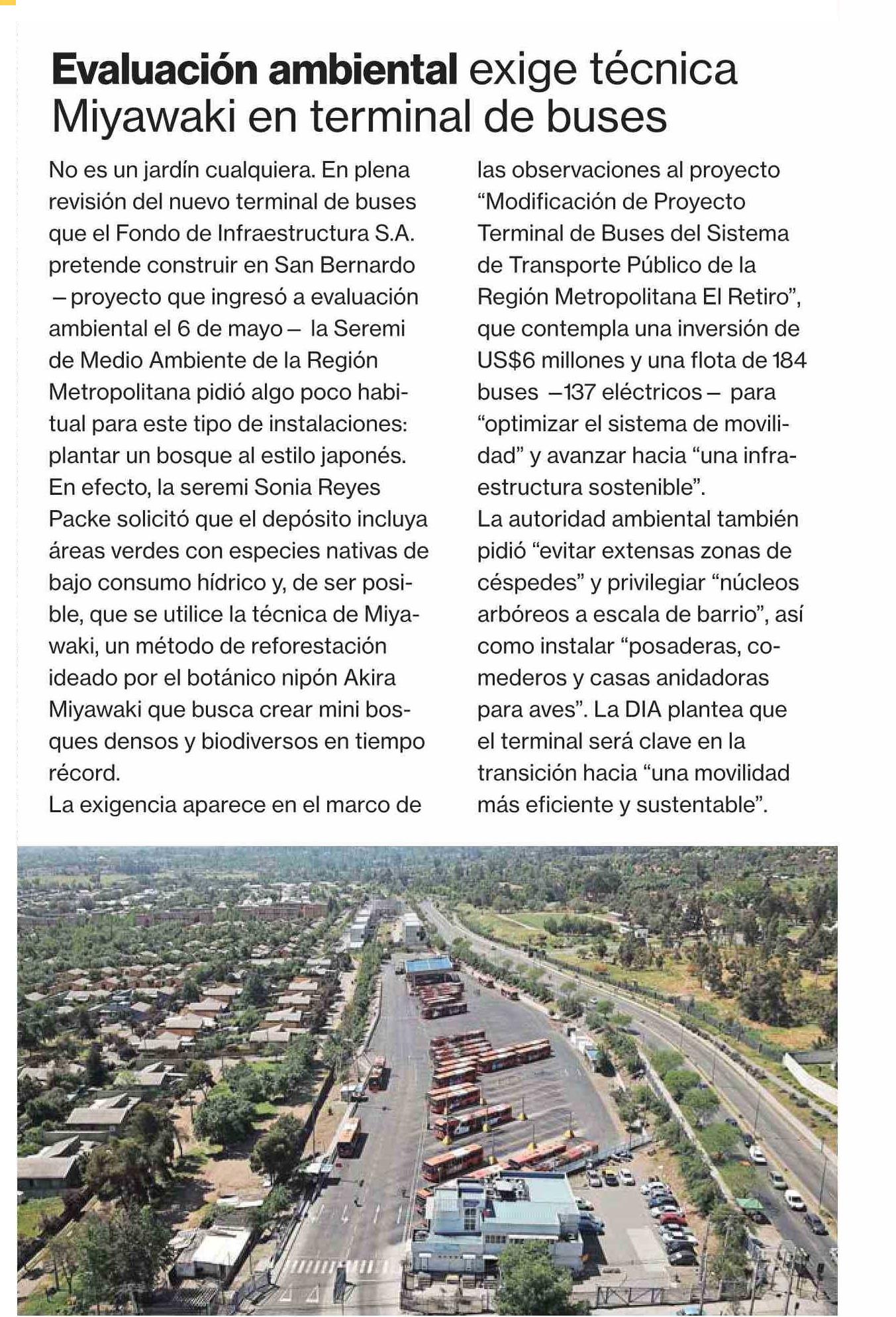 Evaluación ambiental exige técnica Miyawaki en terminal de buses