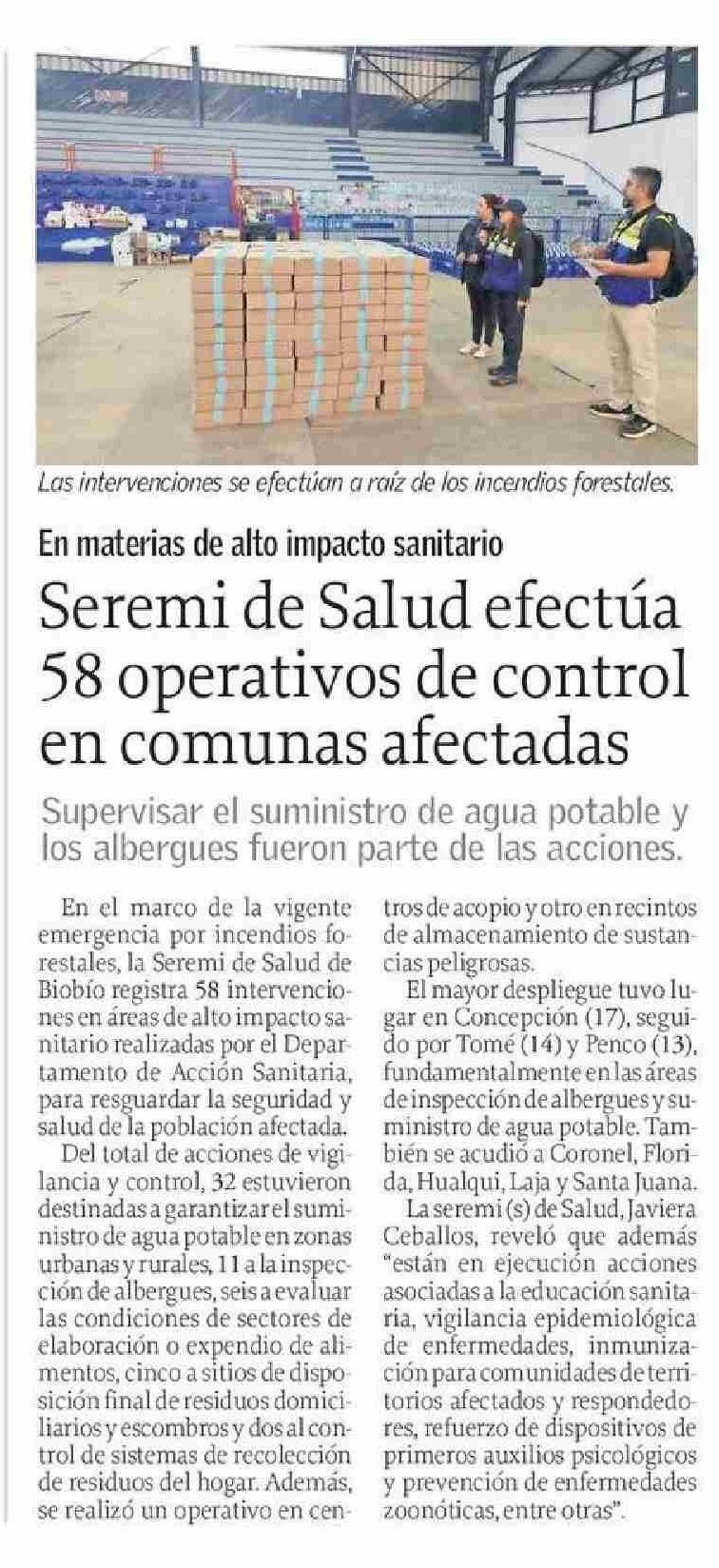 Seremi de Salud efectúa 58 operativos de control en comunas afectadas