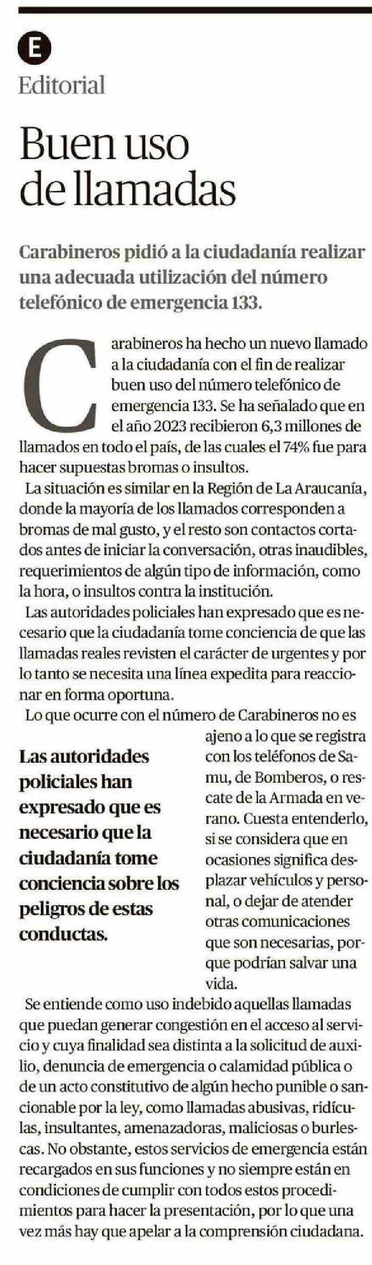 Editorial: Buen uso de llamadas