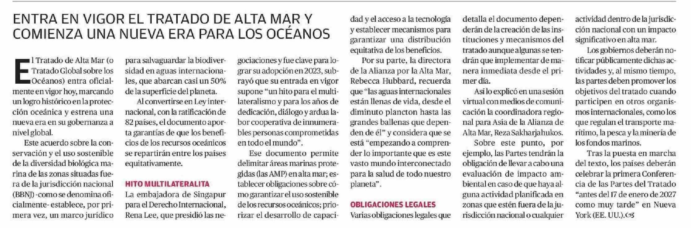 ENTRA EN VIGOR EL TRATADO DE ALTA MAR Y COMIENZA UNA NUEVA ERA PARA LOS OCÉANOS