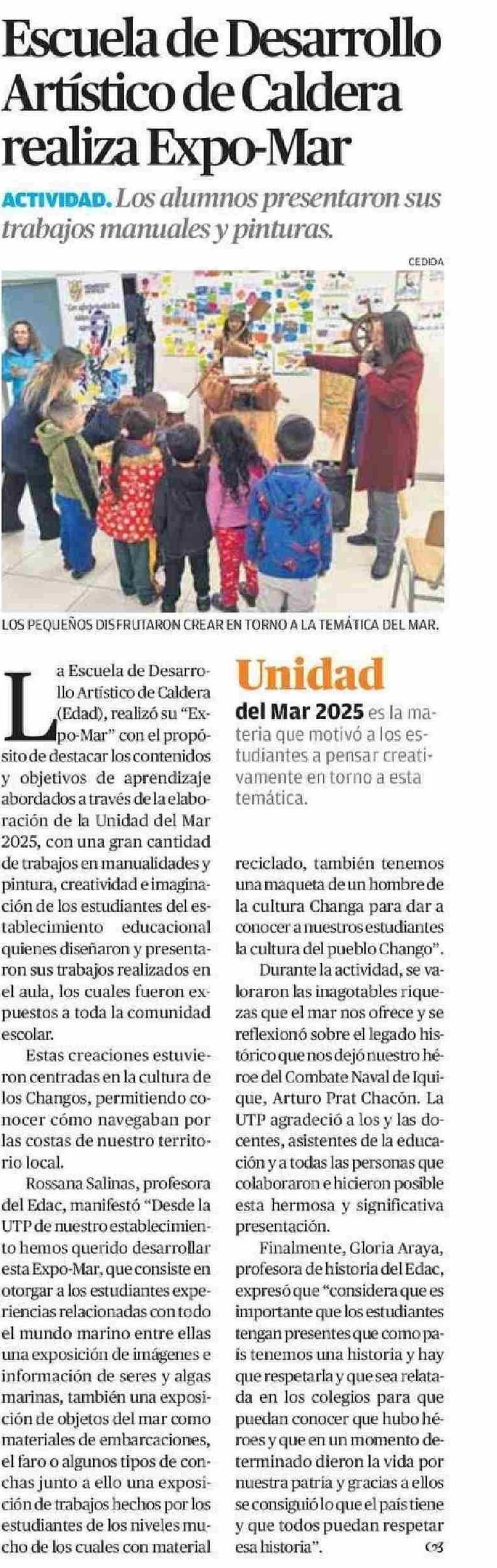 Escuela de Desarrollo Artístico de Caldera realiza Expo-Mar