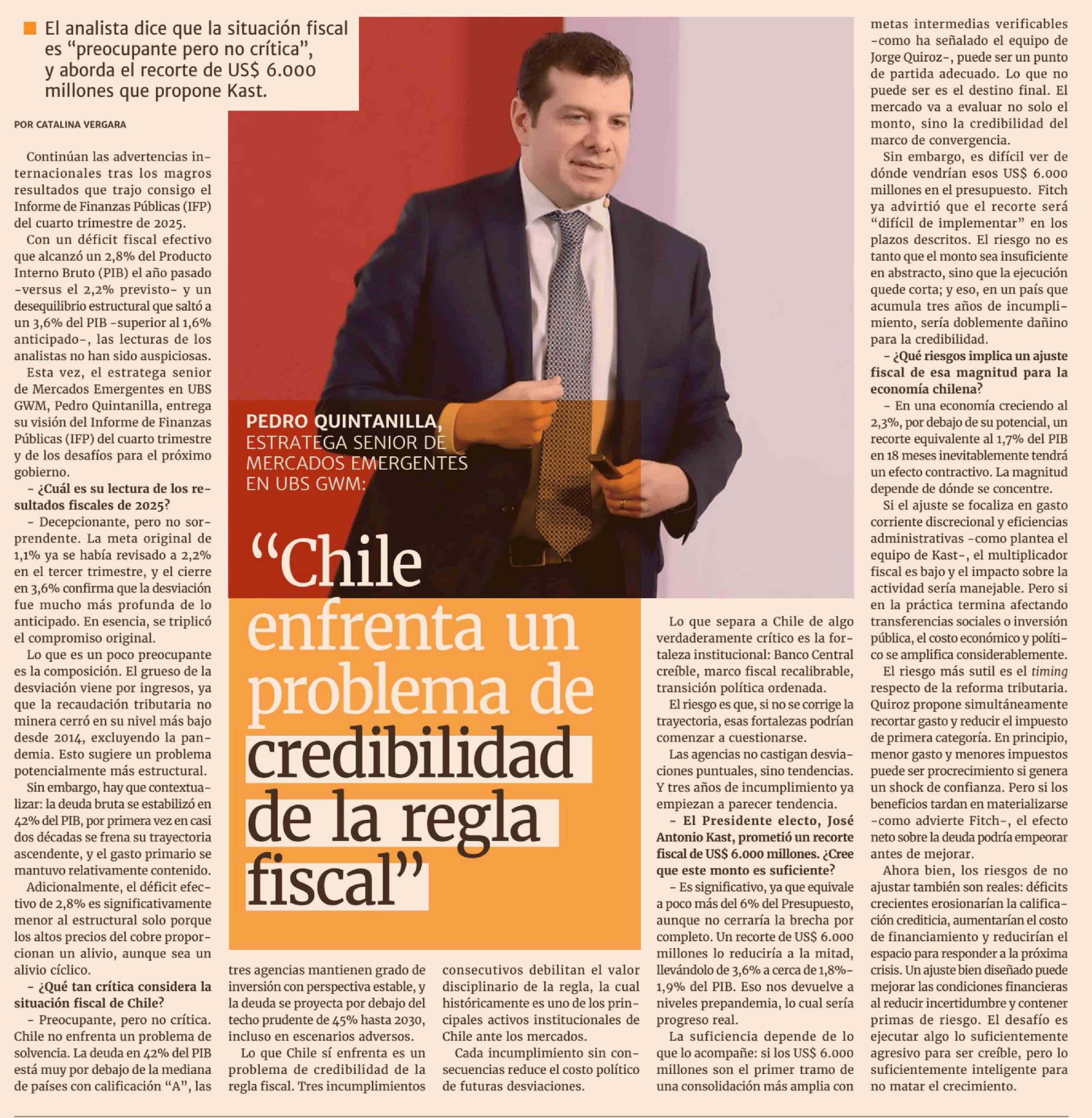 "Chile enfrenta un problema de credibilidad de la regla fiscal"