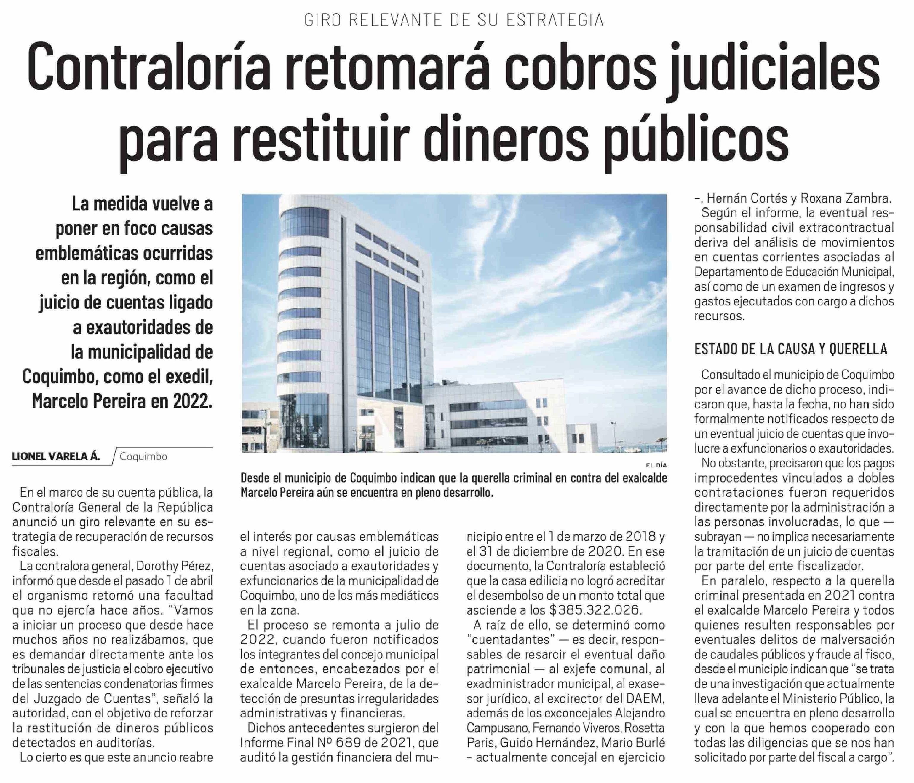 Contraloría retomará cobros judiciales para restituir dineros públicos