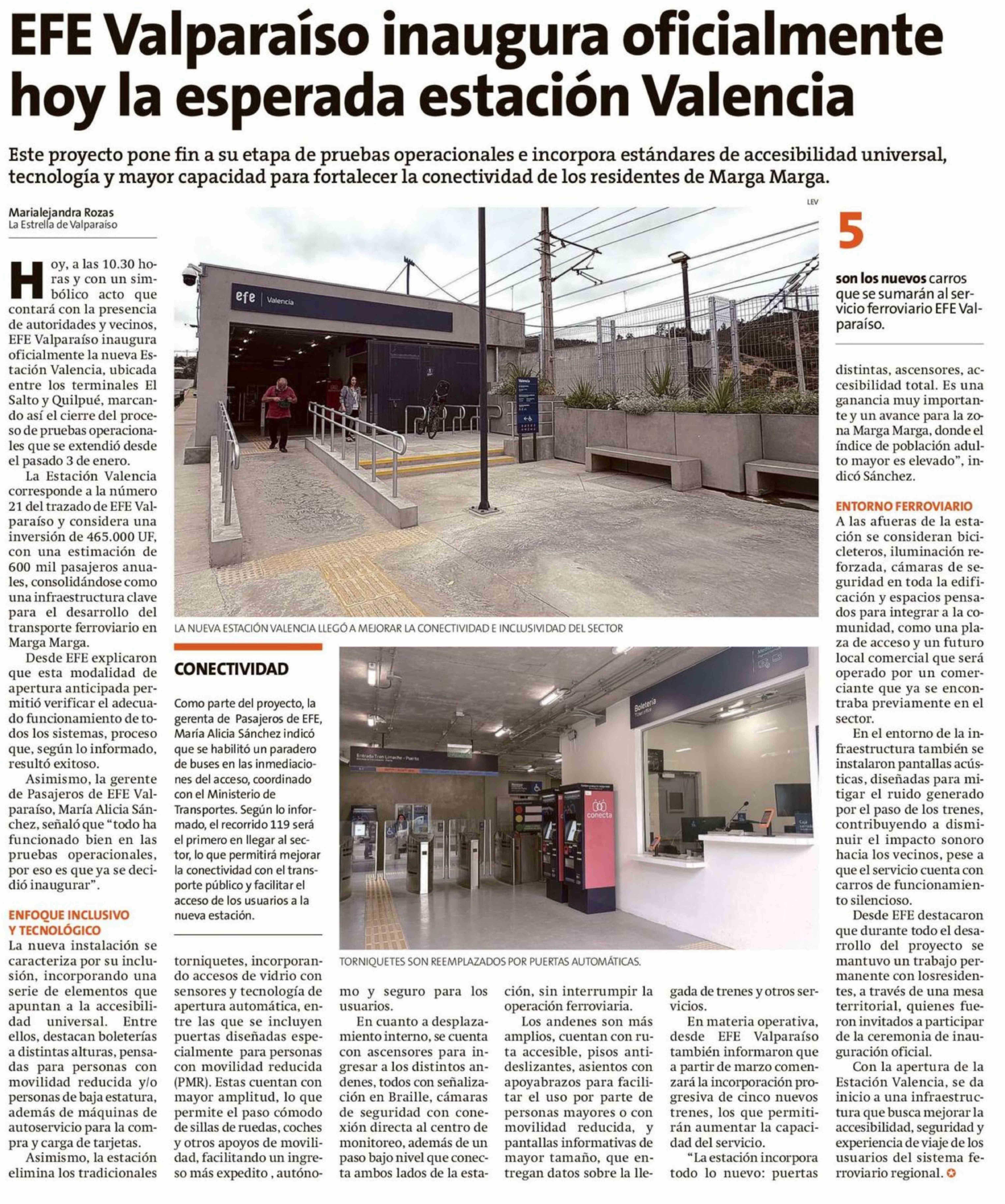 EFE Valparaíso inaugura oficialmente hoy la esperada estación Valencia