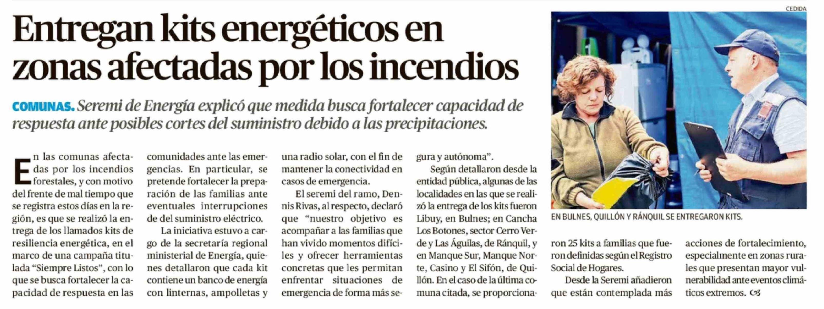 Entregan kits energéticos en zonas afectadas por los incendios