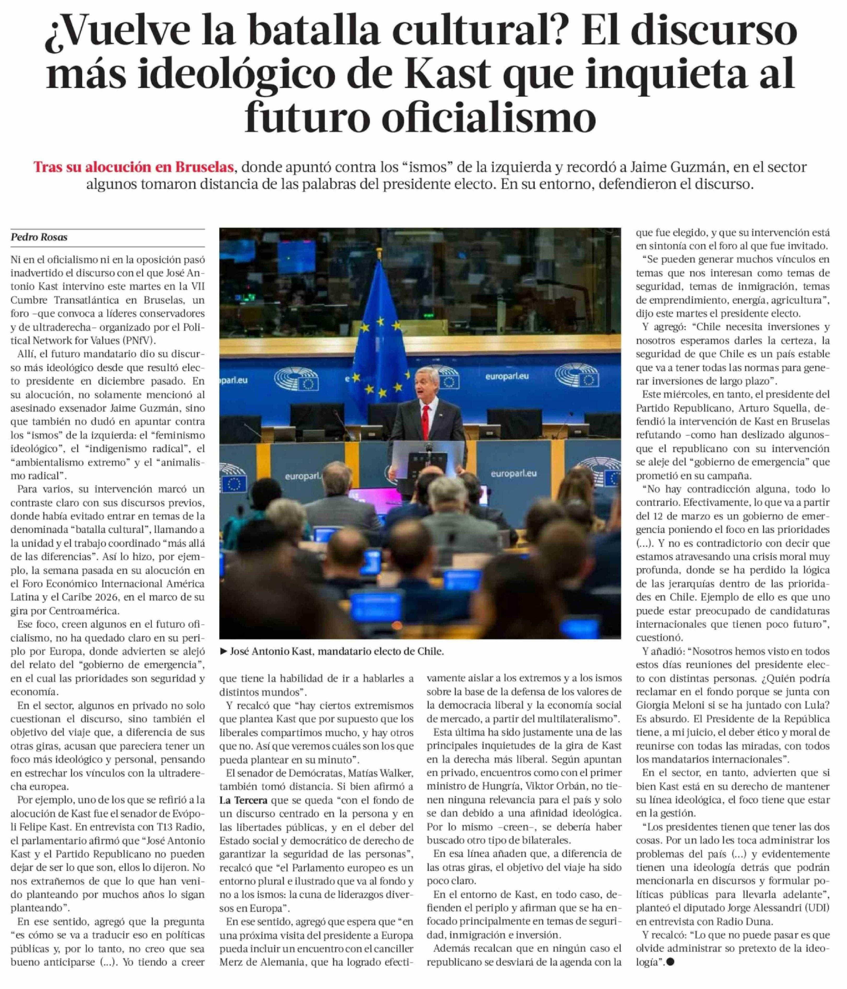 ¿Vuelve la batalla cultural? El discurso más ideológico de Kast que inquieta al futuro oficialismo