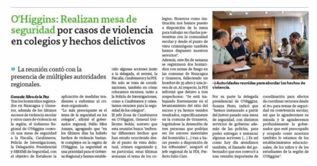 O'Higgins: Realizan mesa de seguridad por casos de violencia en colegios y hechos delictivos