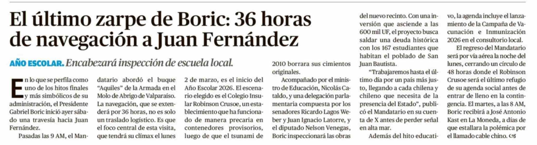 El último zarpe de Boric: 36 horas de navegación a Juan Fernández