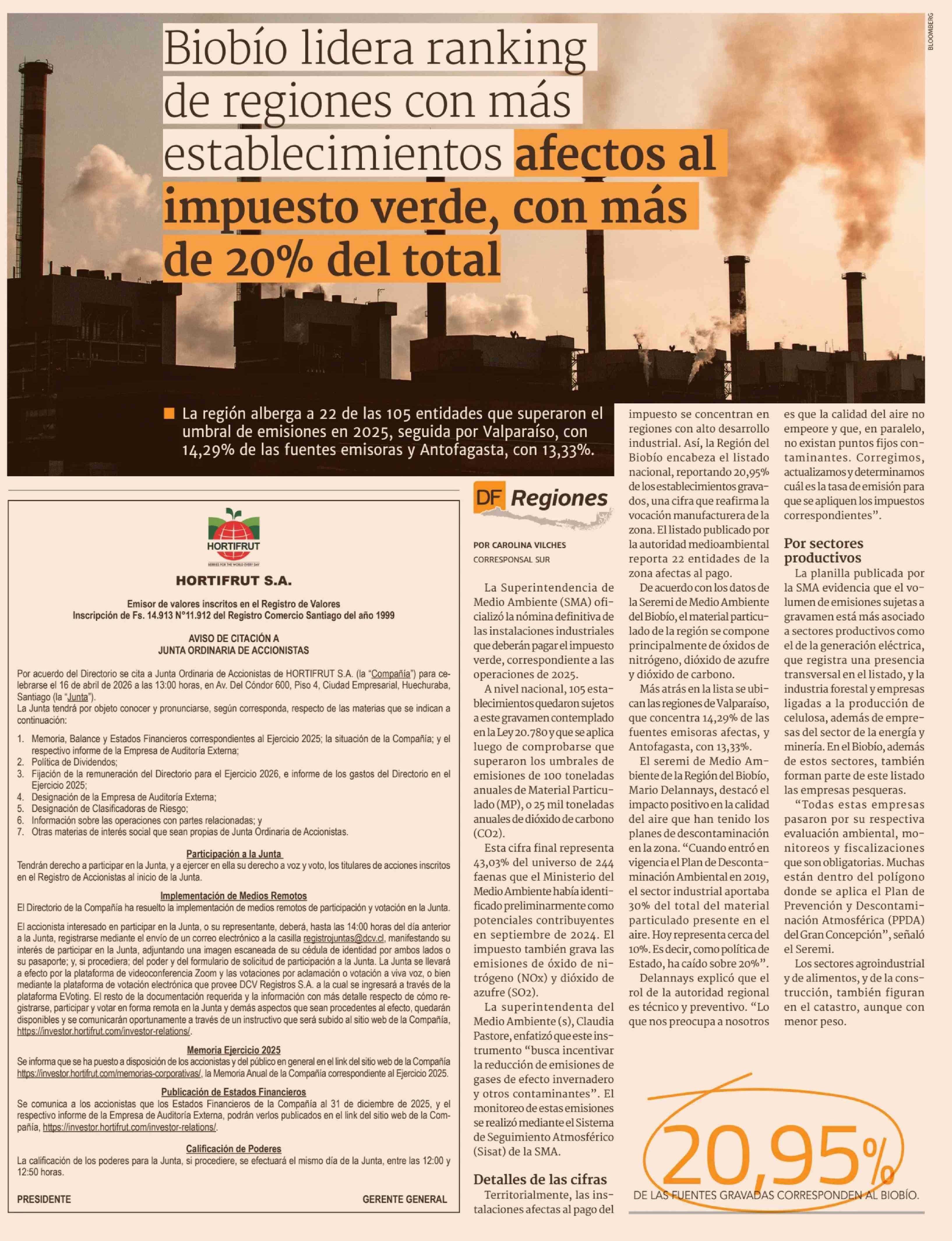 Biobío lidera ranking de regiones con más establecimientos afectos al impuesto verde, con más de 20% del total