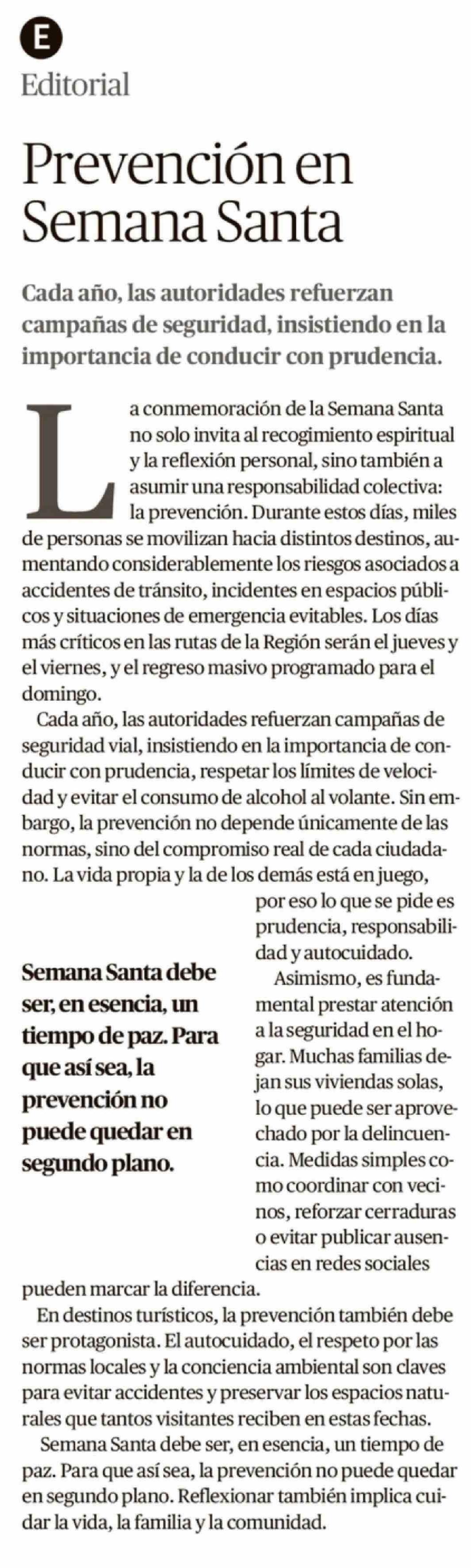 Editorial: Prevención en Semana Santa