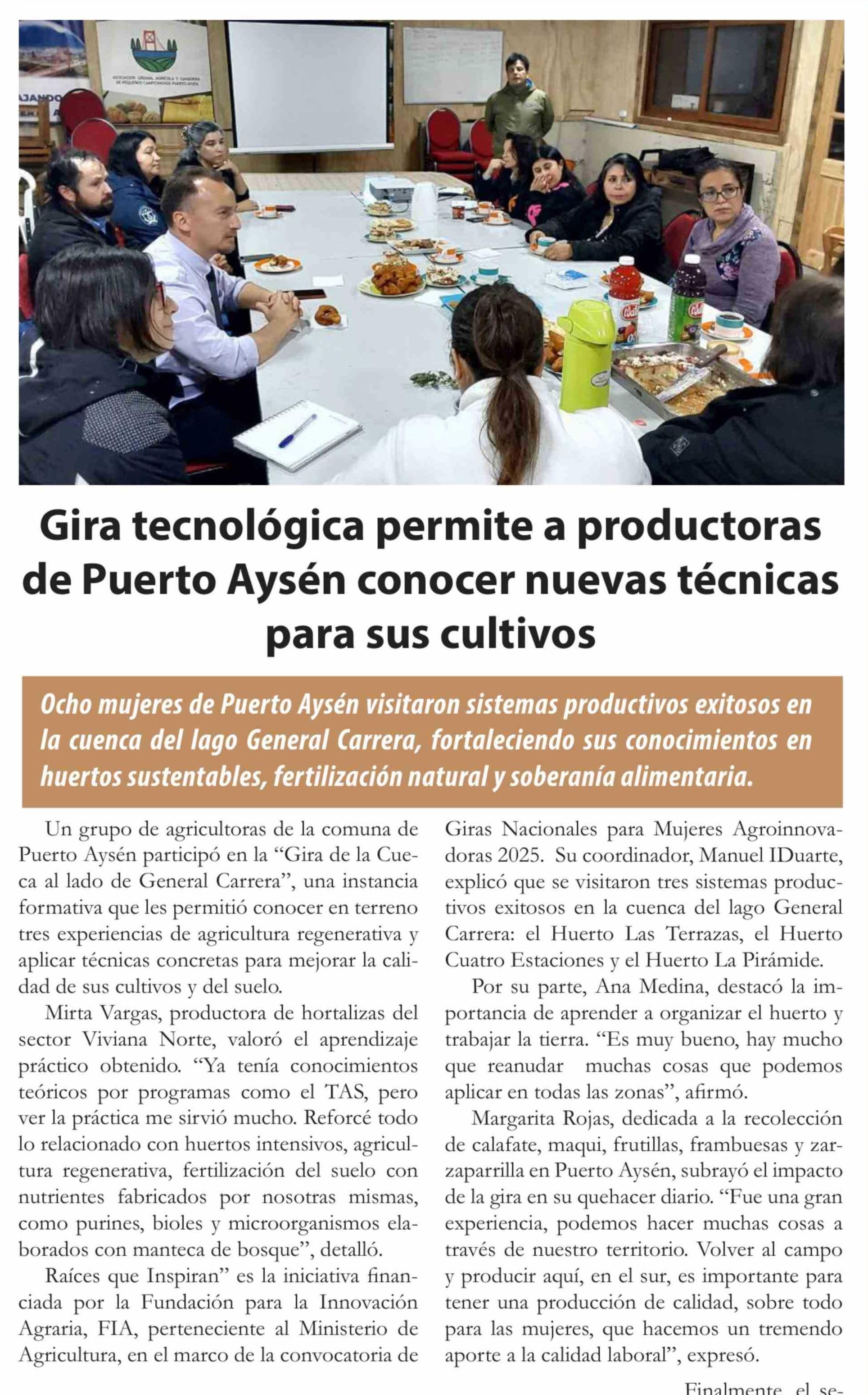Gira tecnológica permite a productoras de Puerto Aysen conocer nuevas técnicas para sus cultivos