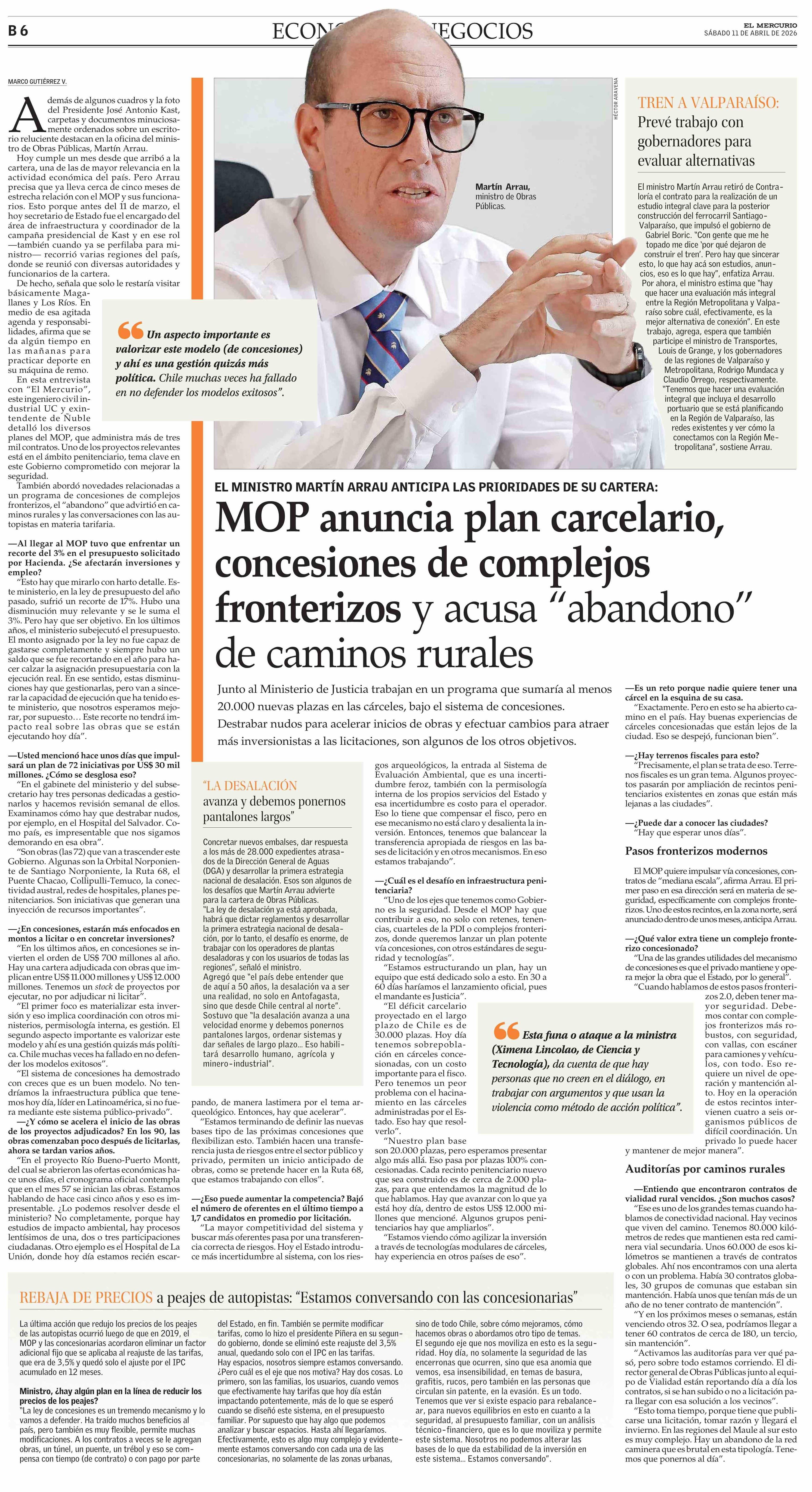 MOP anuncia plan carcelario, concesiones de complejos fronterizos y acusa “abandono” de caminos rurales