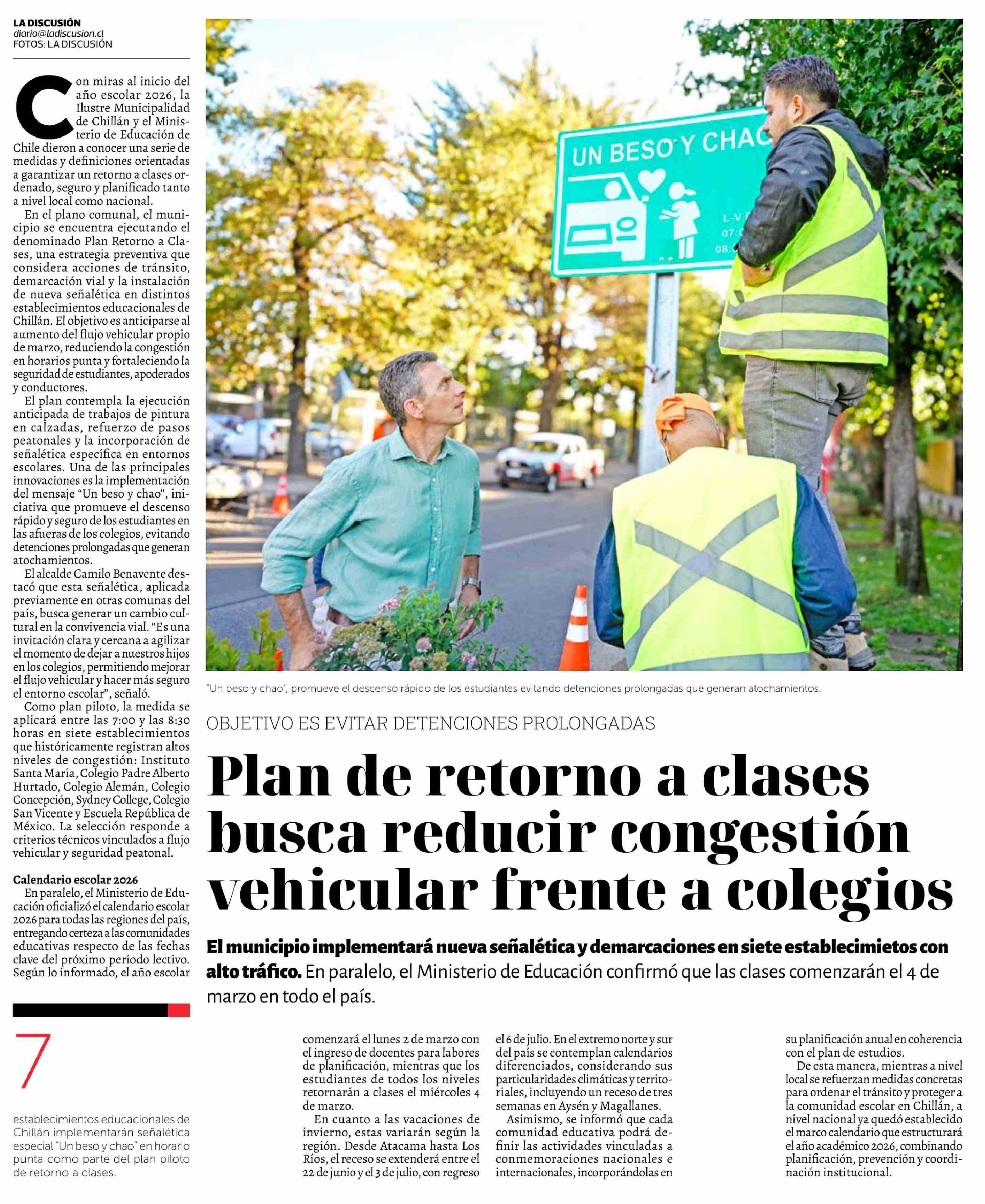 Plan de retorno a clases busca reducir congestión vehicular frente a colegios