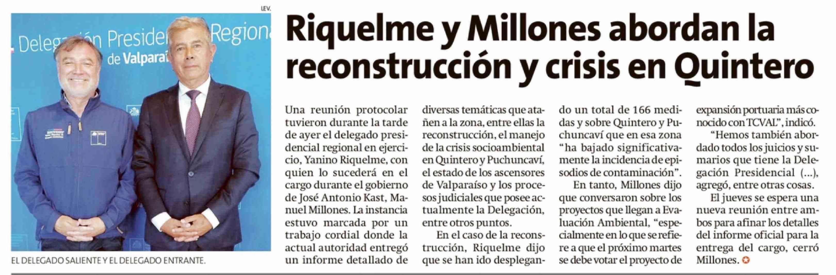 Riquelme y Millones abordan la reconstrucción y crisis en Quintero