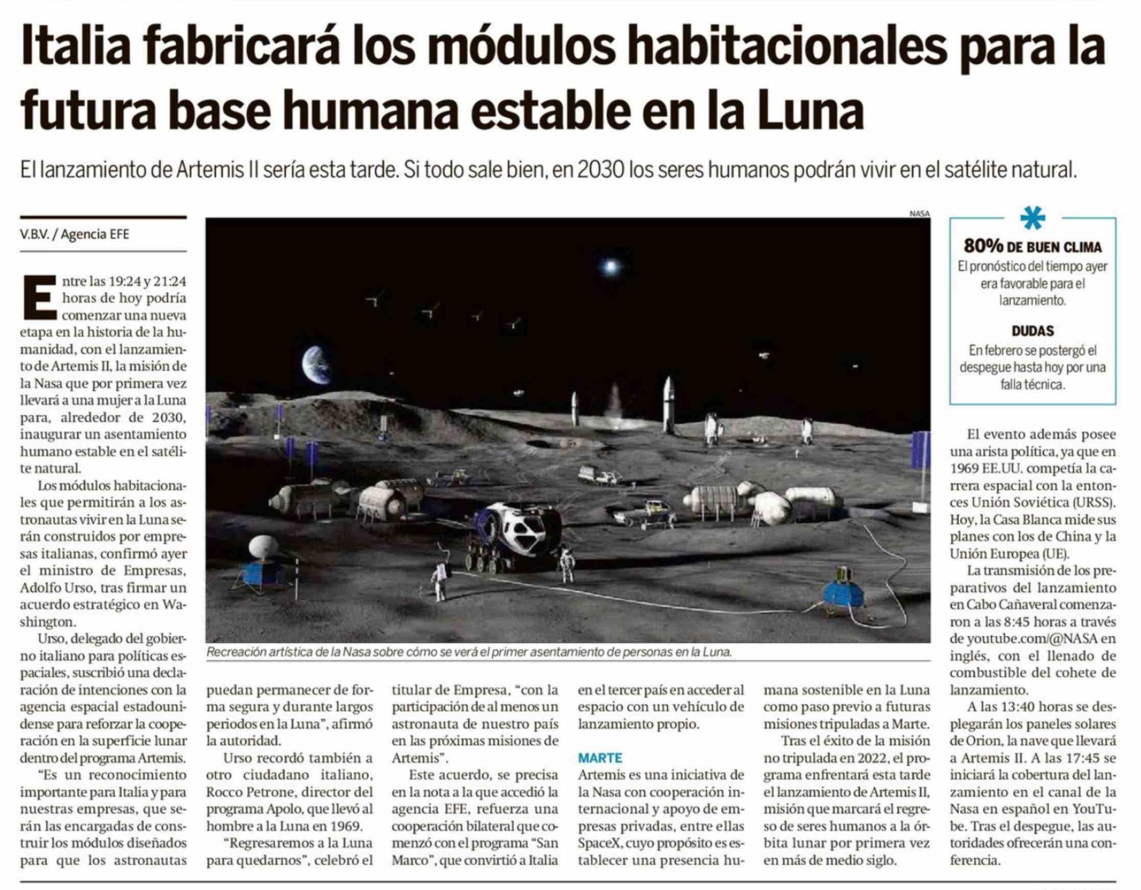 Italia fabricará los módulos habitacionales para la futura base humana estable en la Luna