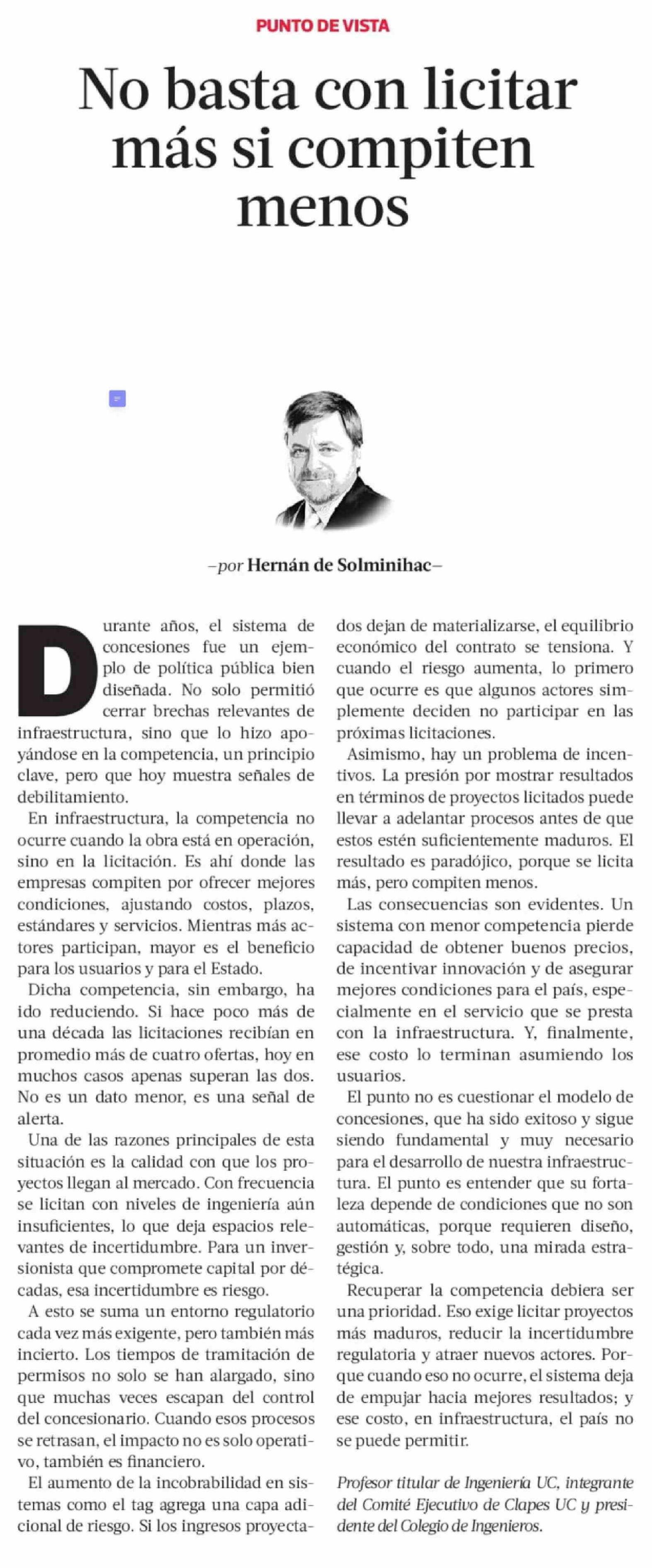 Columnas de Opinión: No basta con licitar más si compiten menos