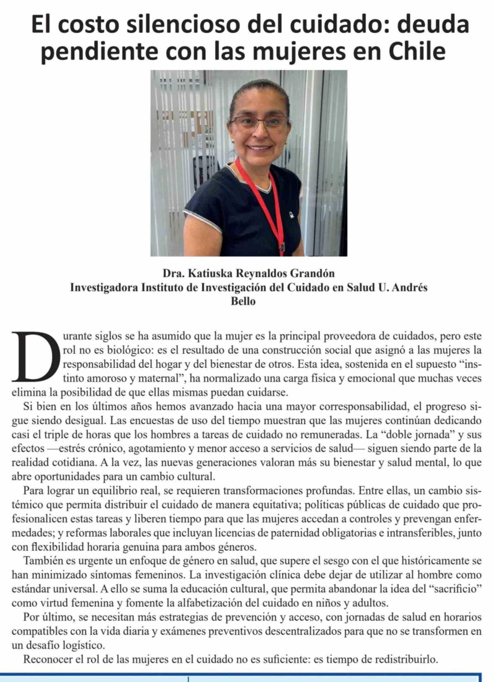 Columnas de Opinión: El costo silencioso del cuidado: deuda pendiente con las mujeres en Chile