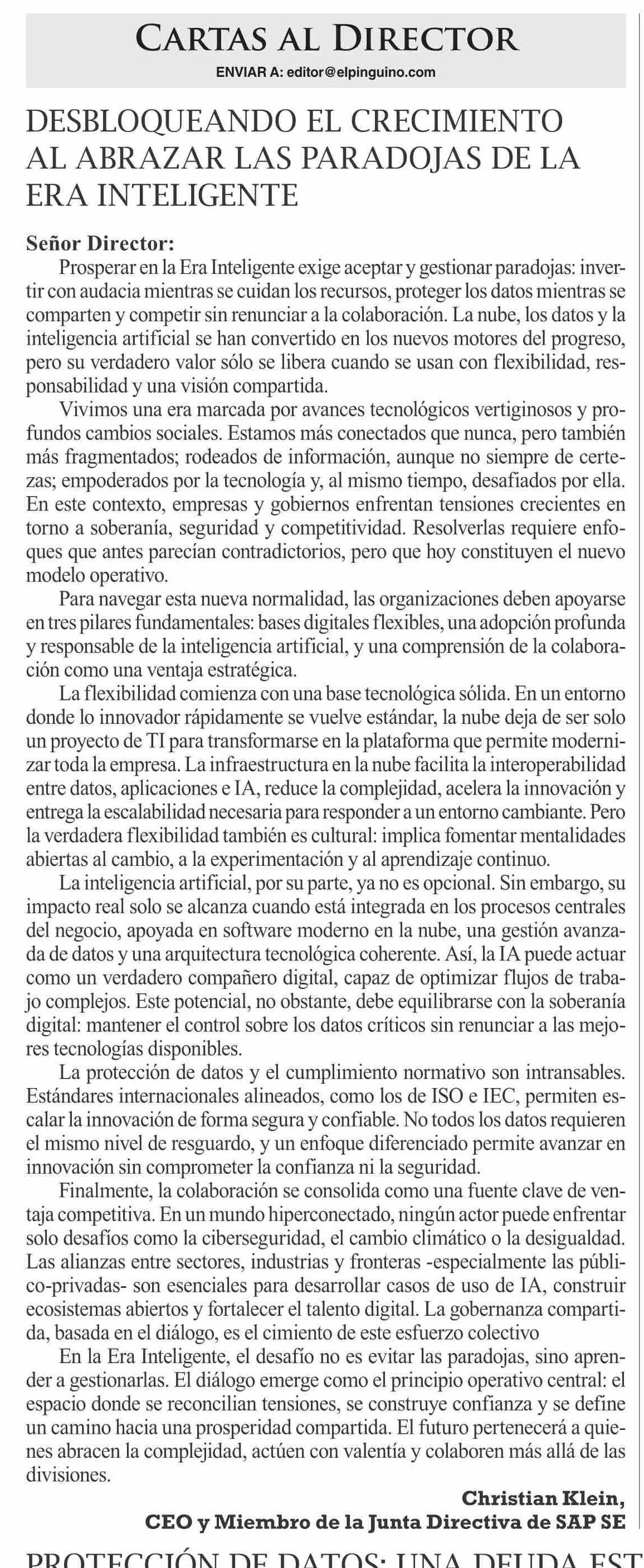 Cartas: DESBLOQUEANDO EL CRECIMIENTO AL ABRAZAR LAS PARADOJAS DE LA ERA INTELIGENTE