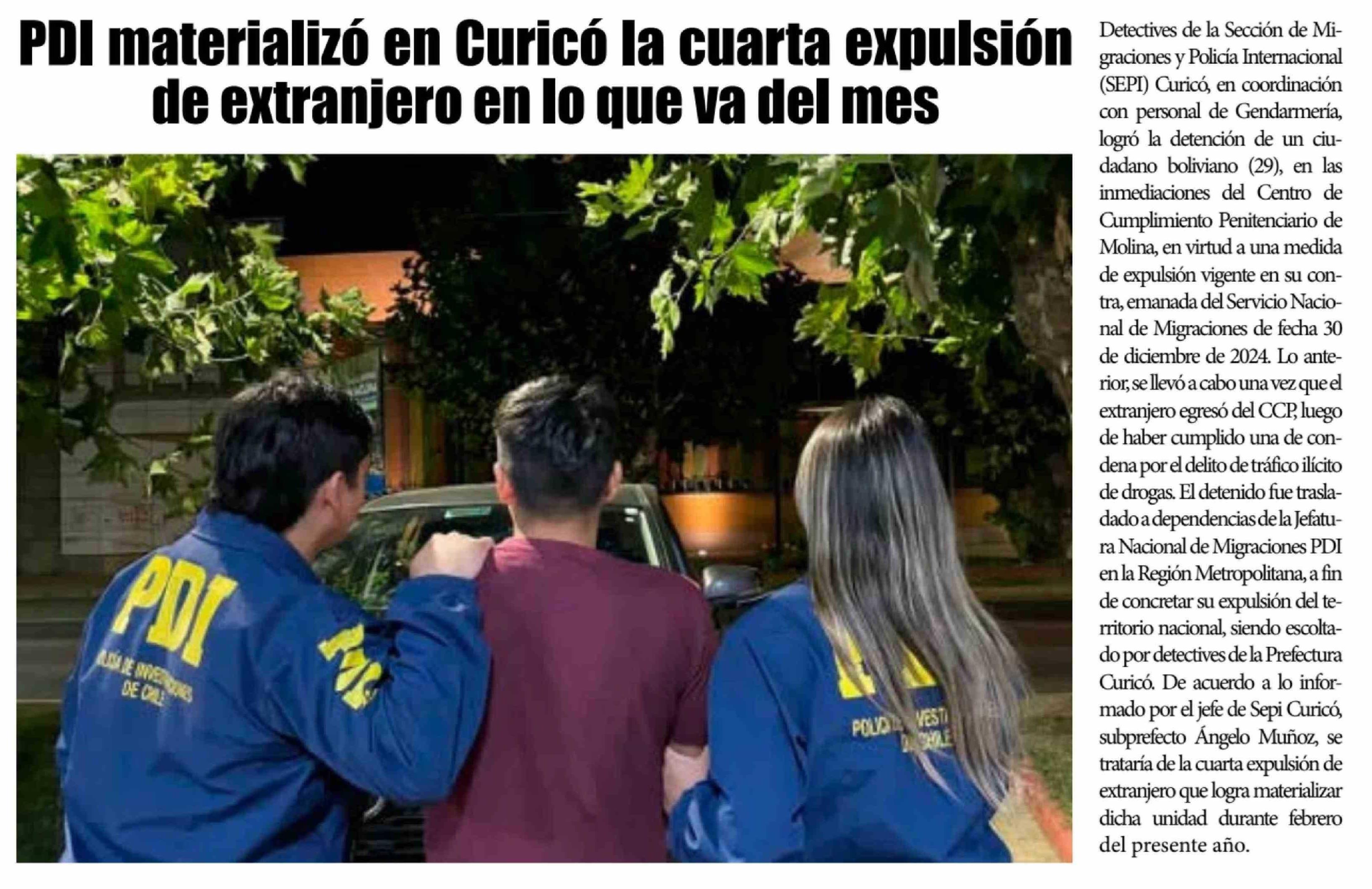 PDI materializó en Curicó la cuarta expulsión de extranjero en lo que va del mes