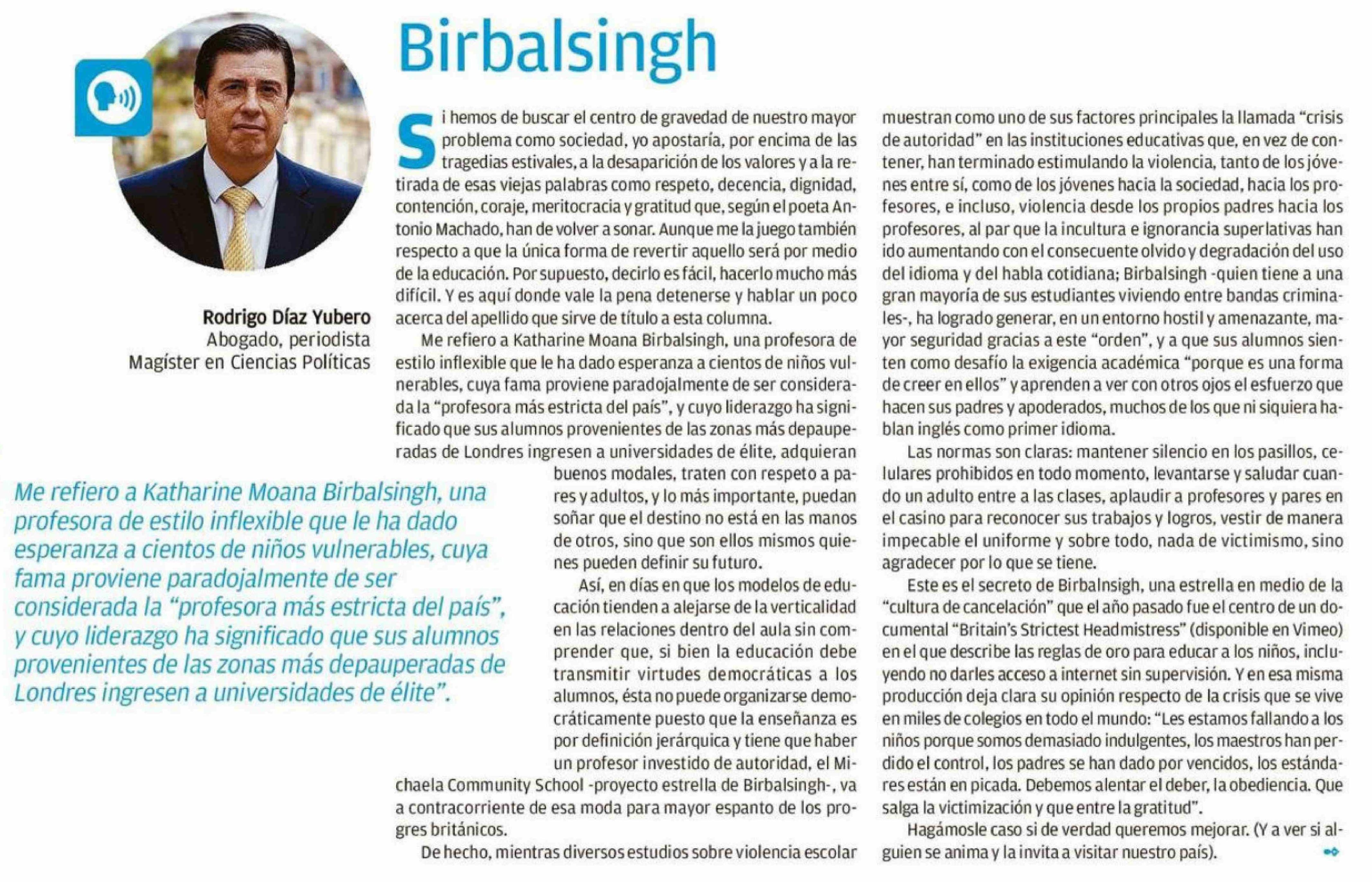 Columnas de Opinión: Birbalsingh