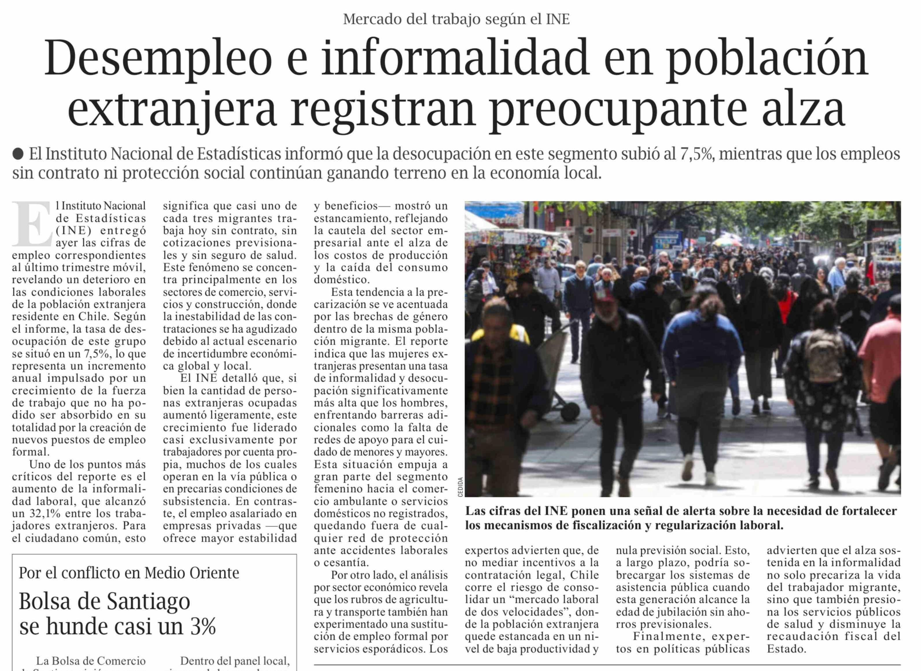 Desempleo e informalidad en población extranjera registran preocupante alza