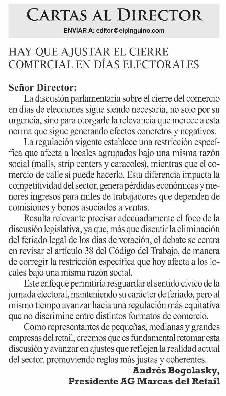 Cartas: Hay que ajustar el cierre comercial en días electorales
