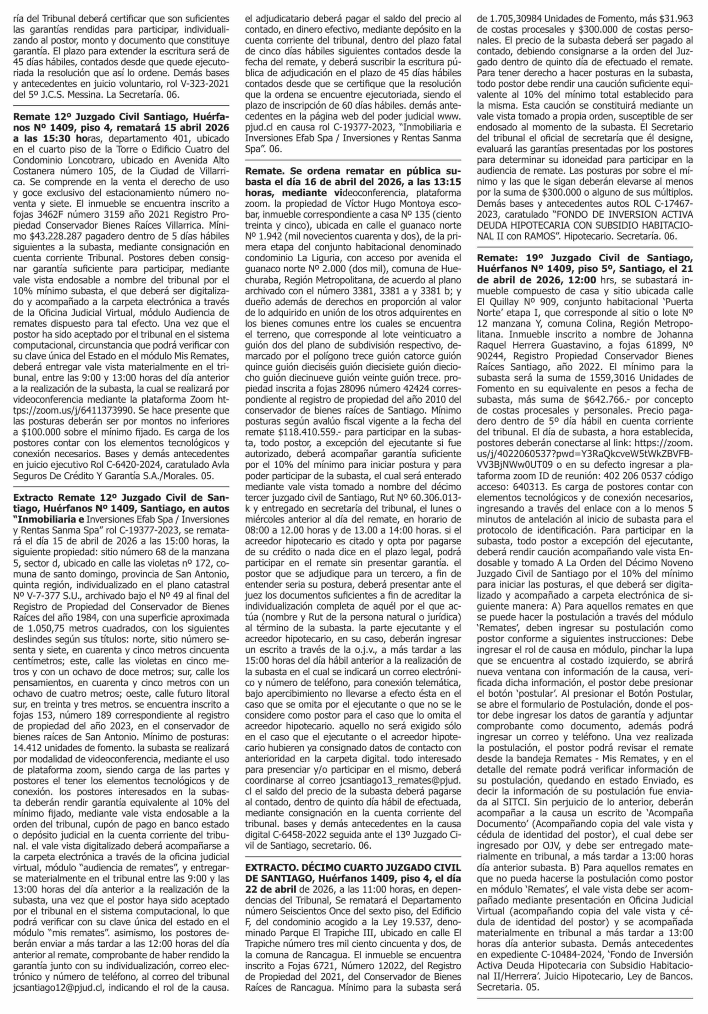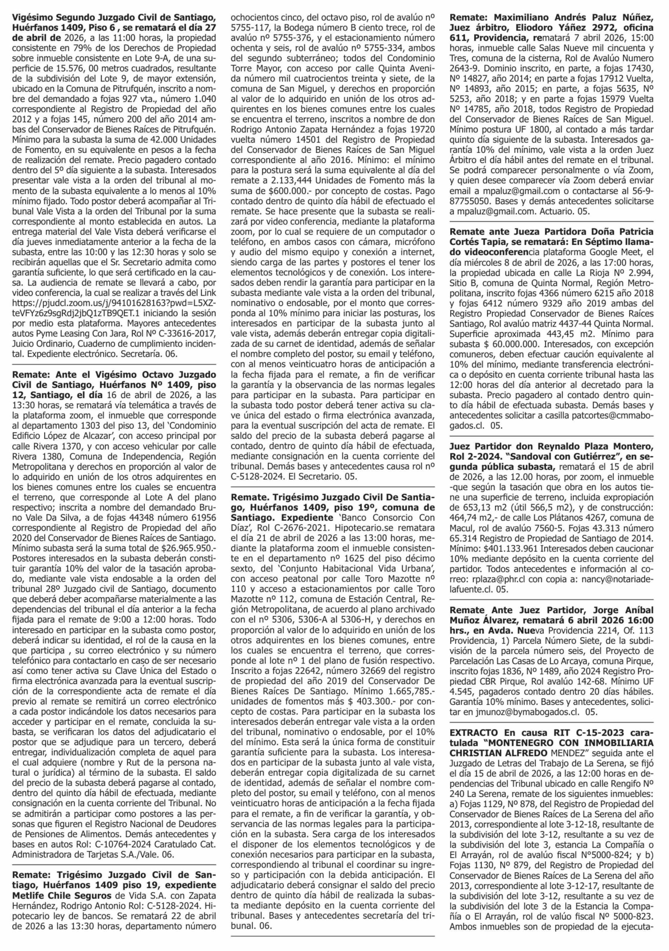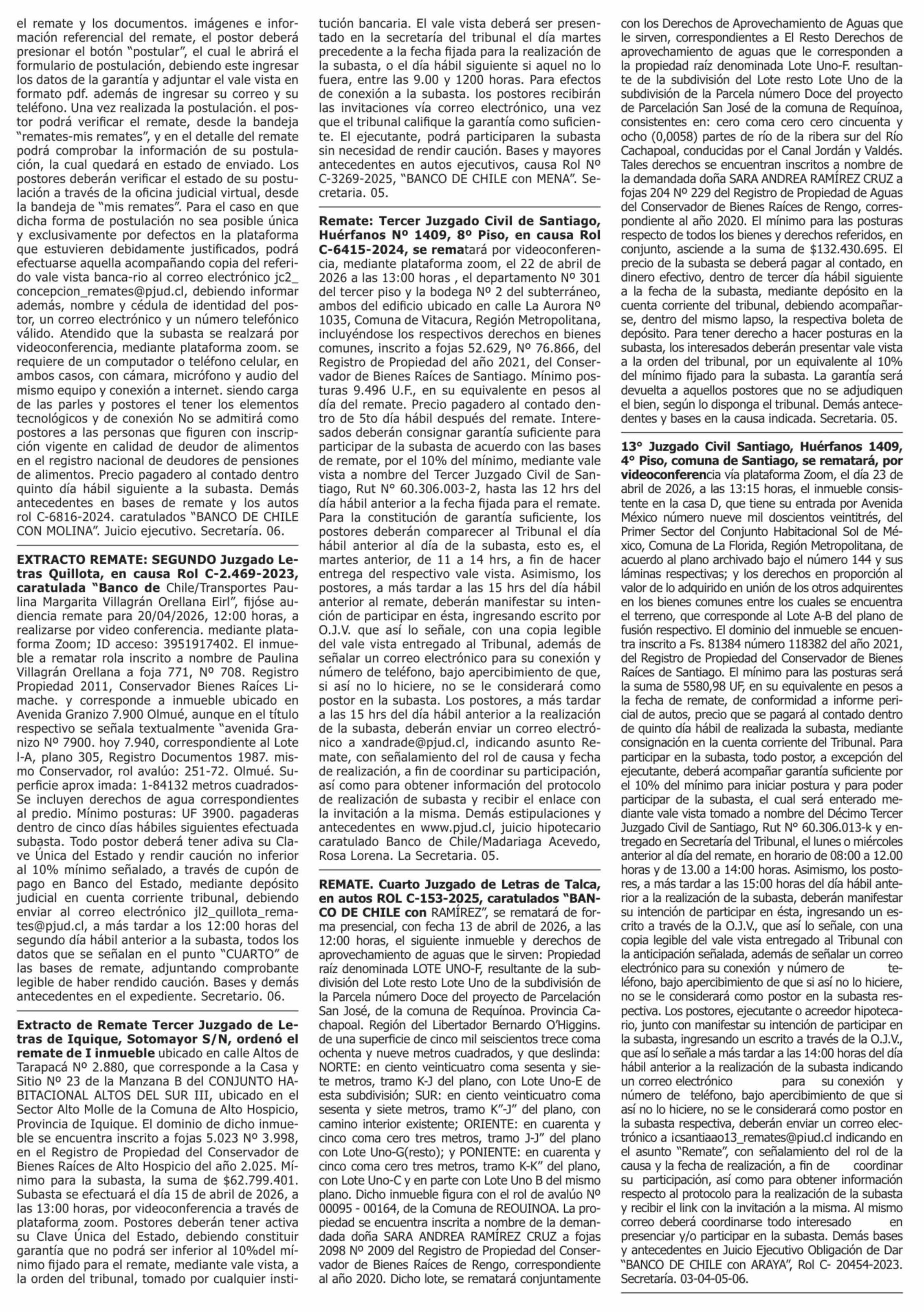 | Fecha: | 05-04-2026 | Sector: | Remates | Región: | Región Metropolitana de Santiago |