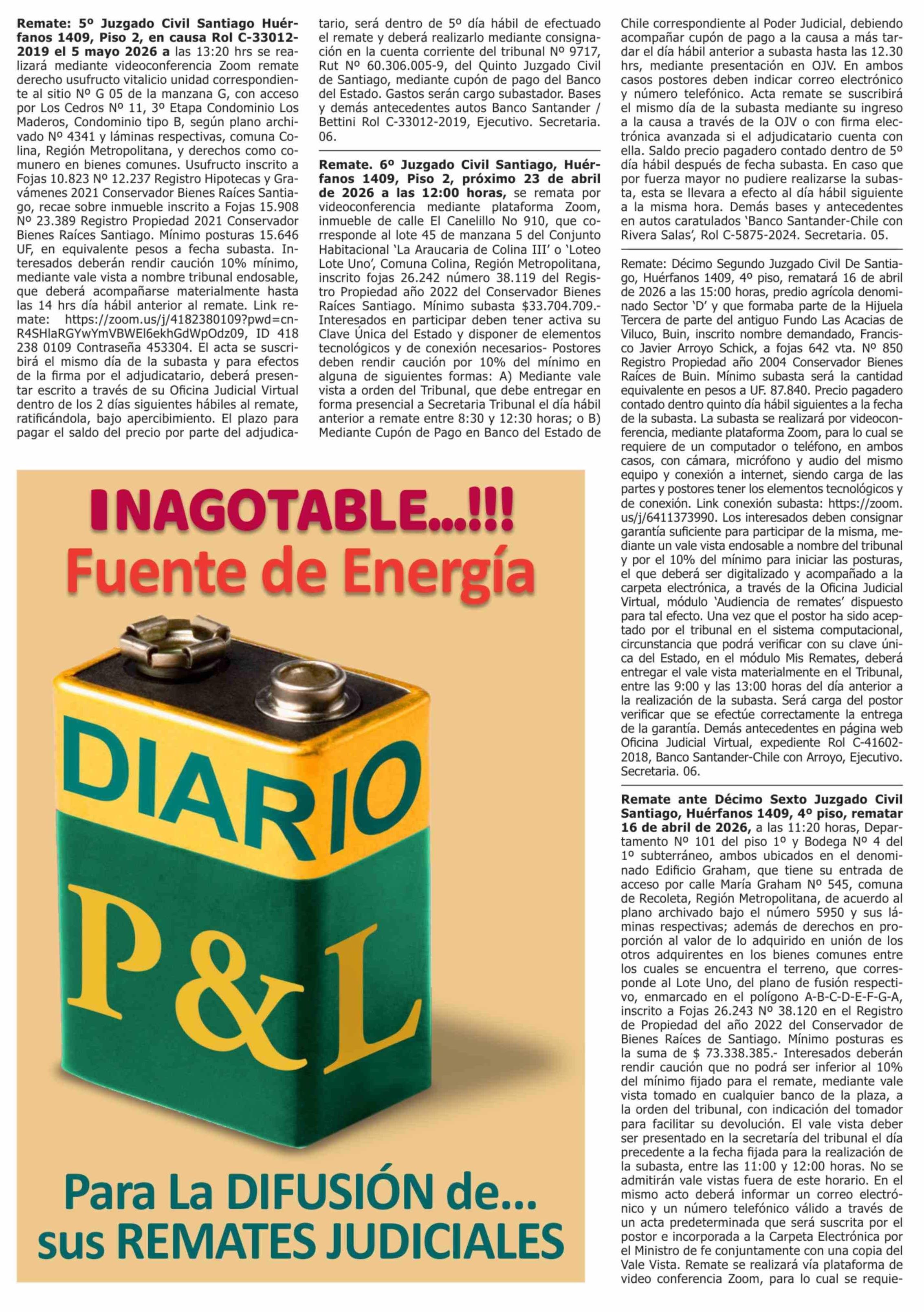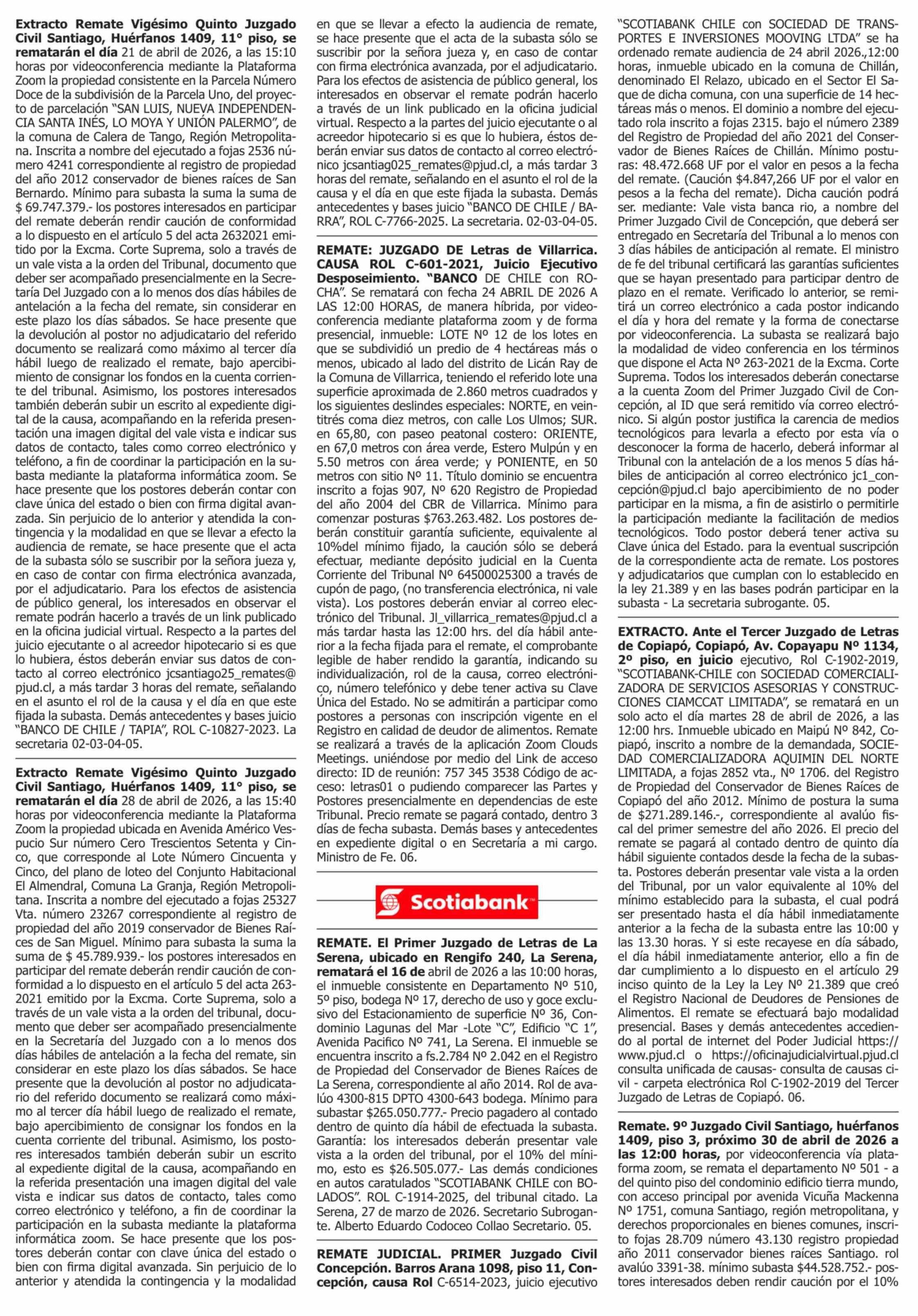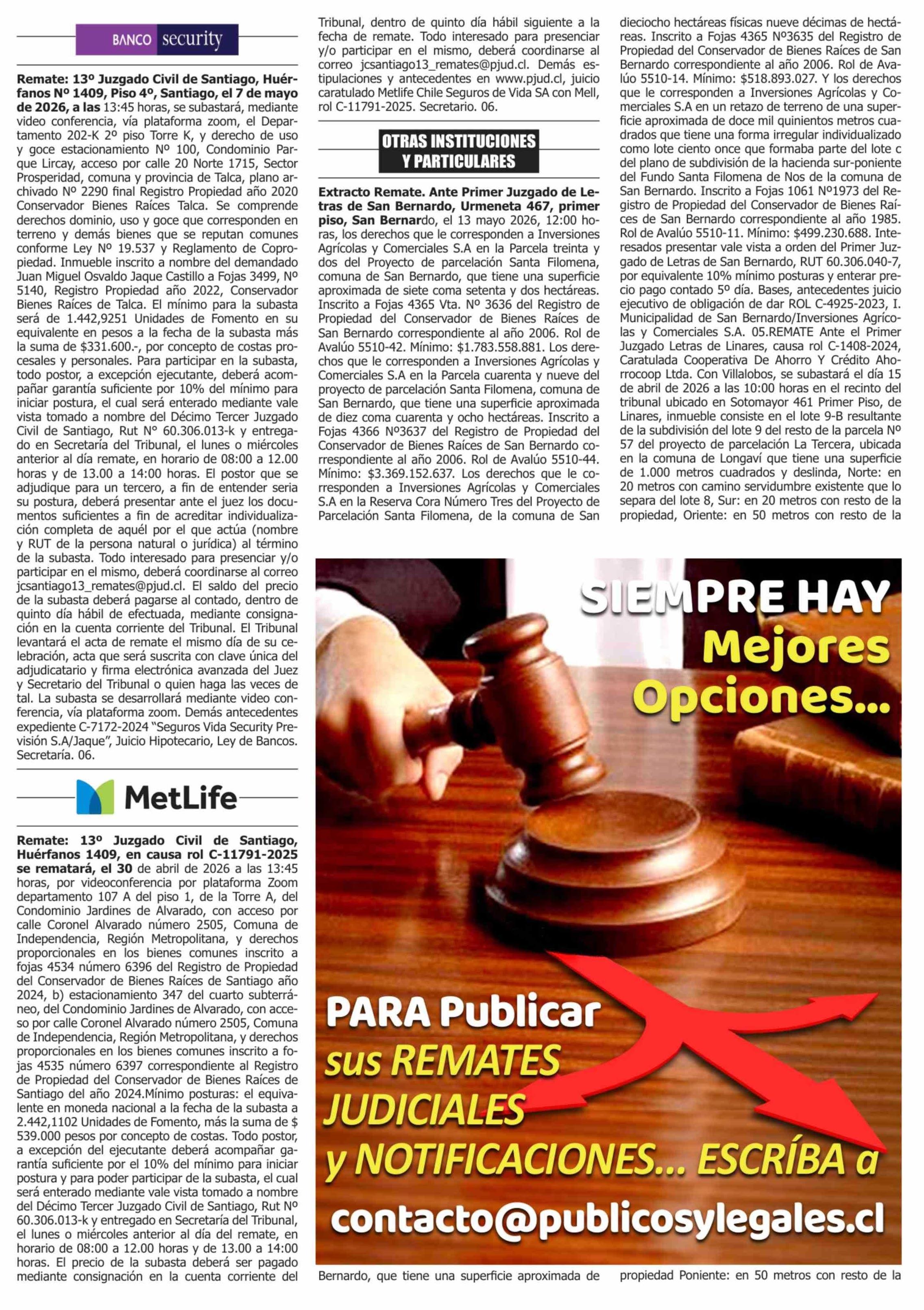 | Fecha: | 05-04-2026 | Sector: | Remates | Región: | Región Metropolitana de Santiago |