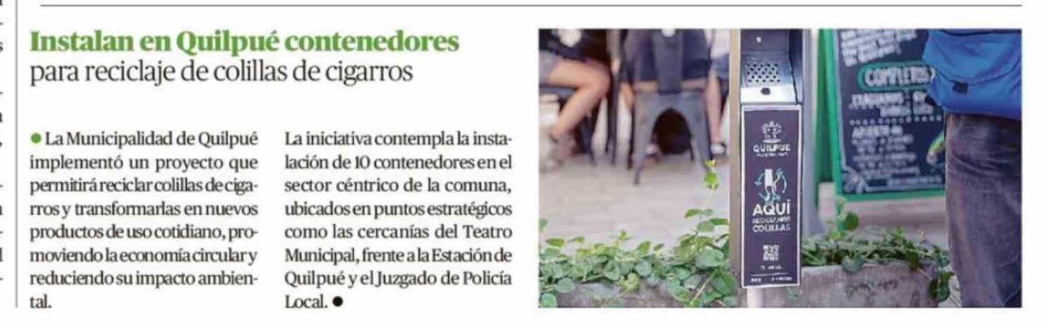 Instalan en Quilpué contenedores para reciclaje de colillas de cigarros