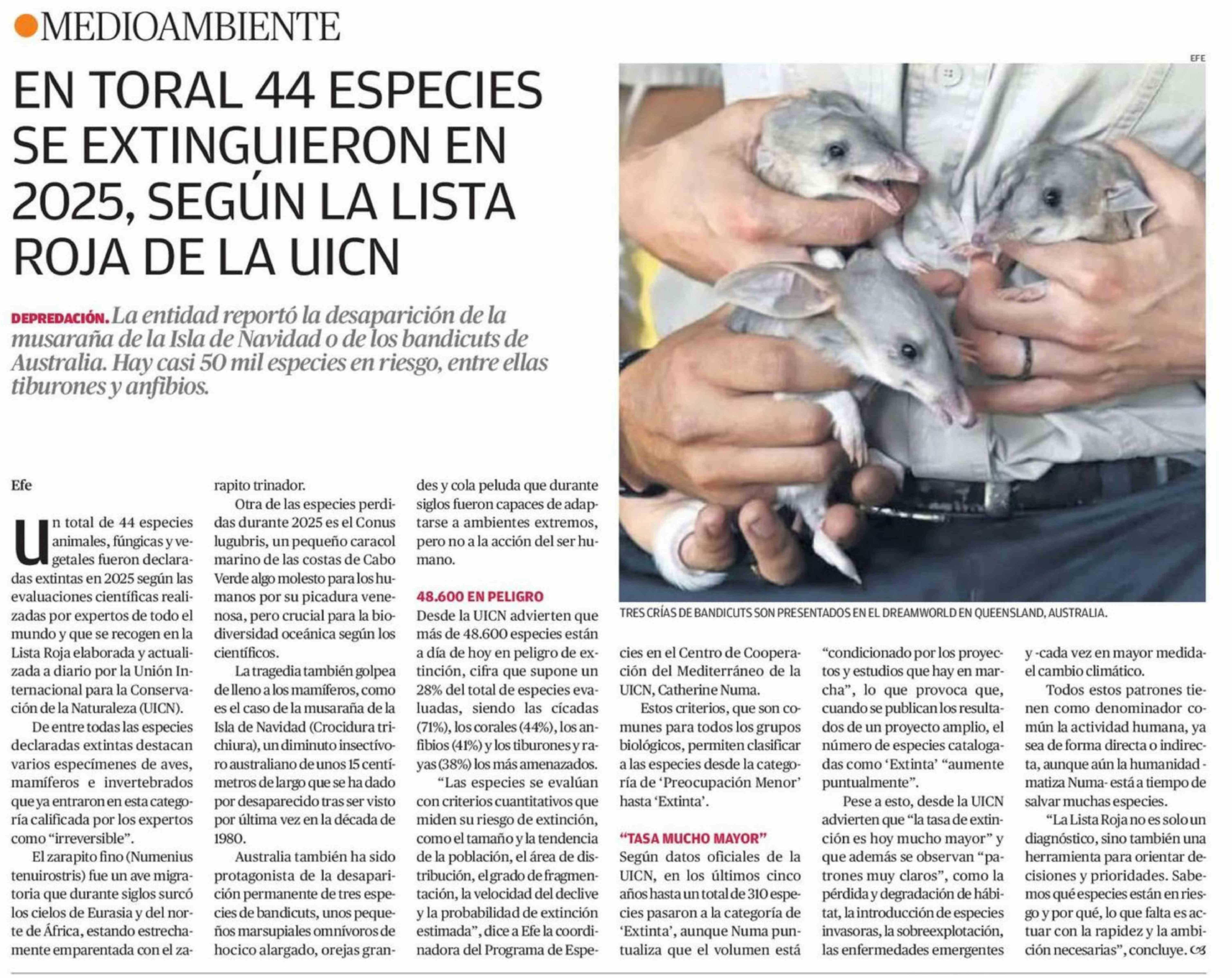 EN TORAL 44 ESPECIES SE EXTINGUIERON EN 2025, SEGÚN LA LISTA ROJA DE LA UICN