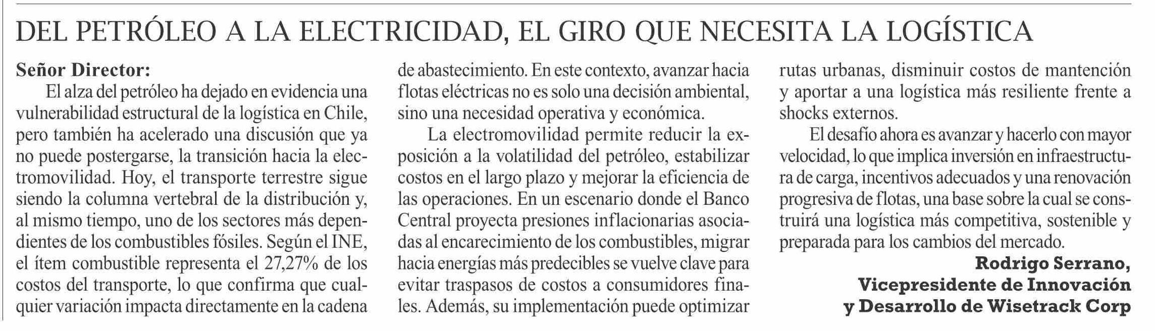 Cartas: Del Petróleo a la electricidad, el giro que necesita la logística