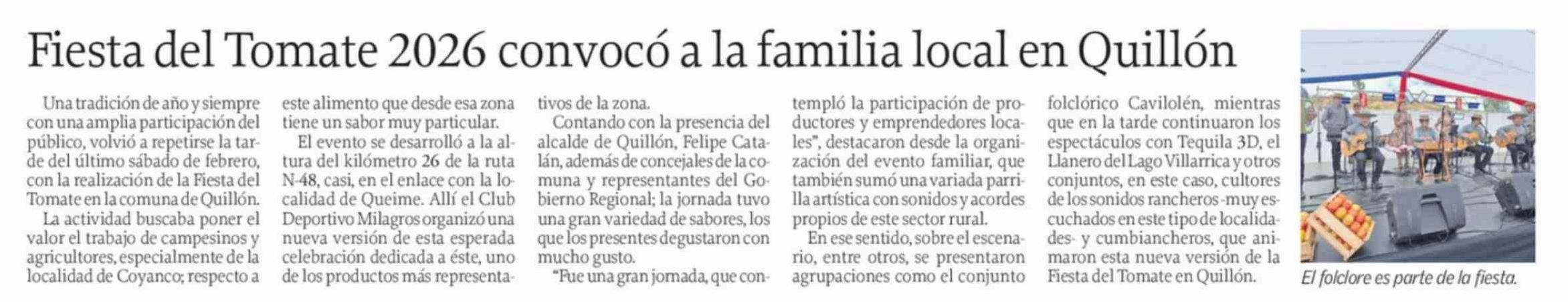 Fiesta del Tomate 2026 convocó a la familia local en Quillón