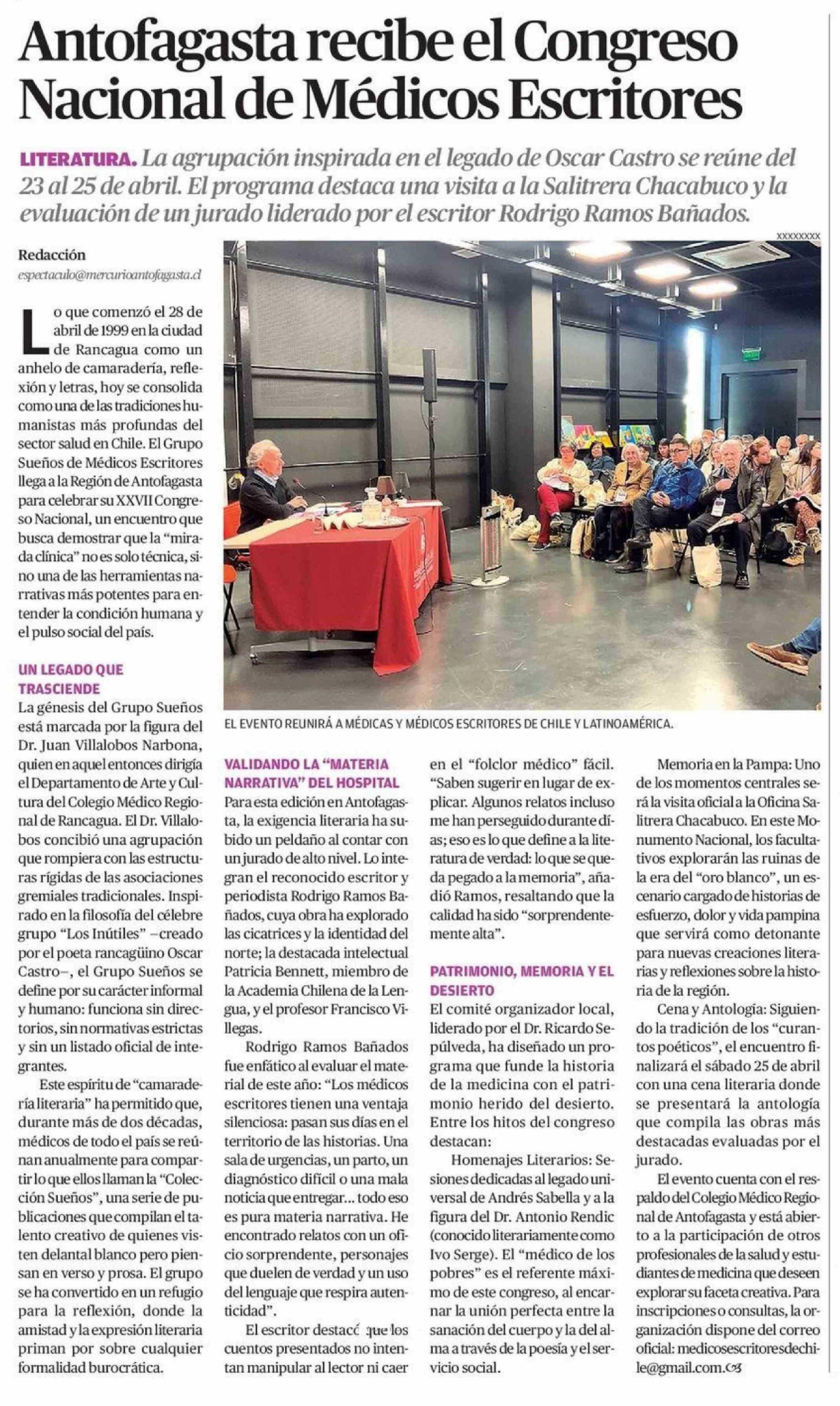 Antofagasta recibe el Congreso Nacional de Médicos Escritores