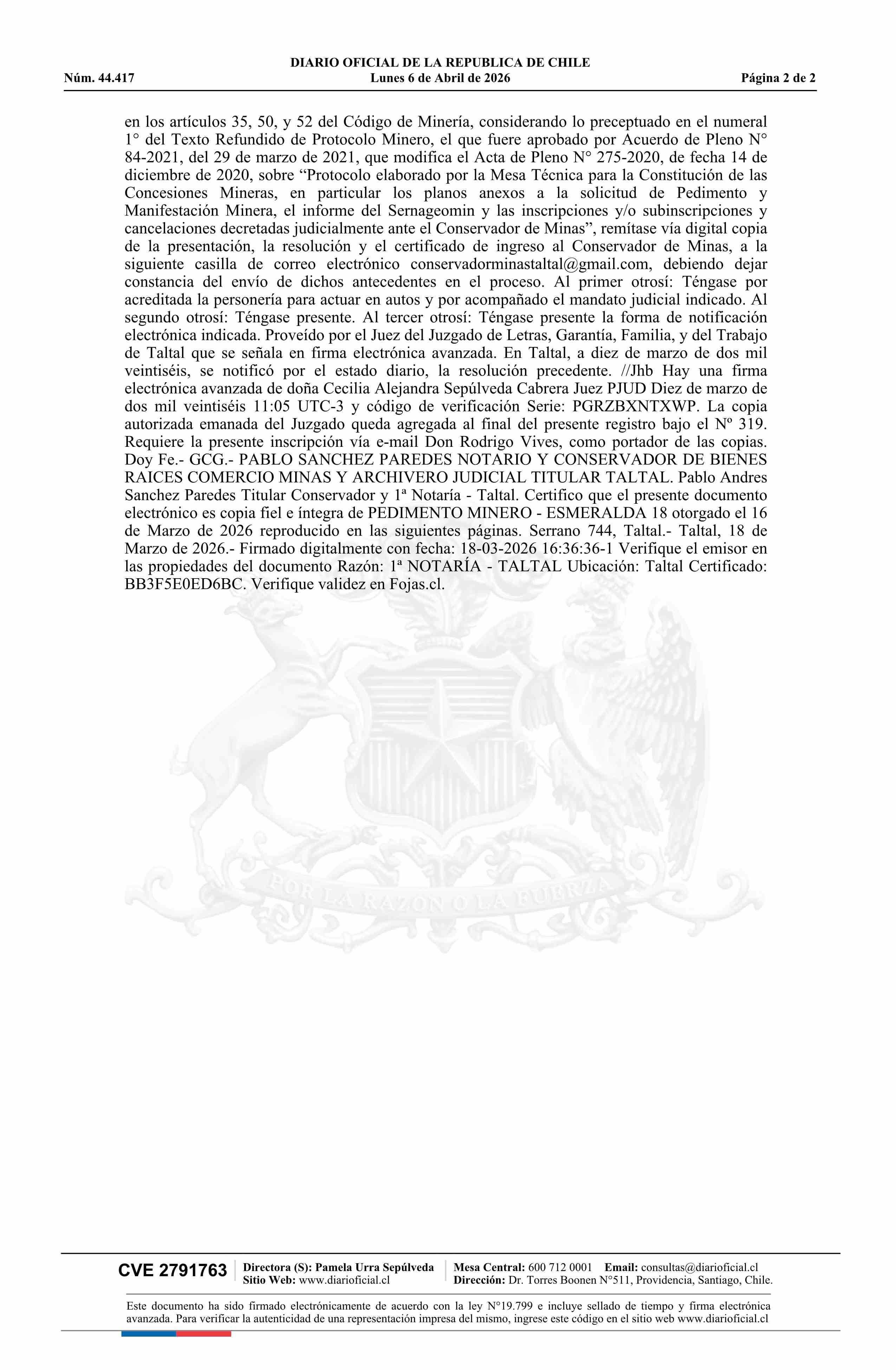 ESMERALDA 18 / Gold Fields Pedernales Limitada