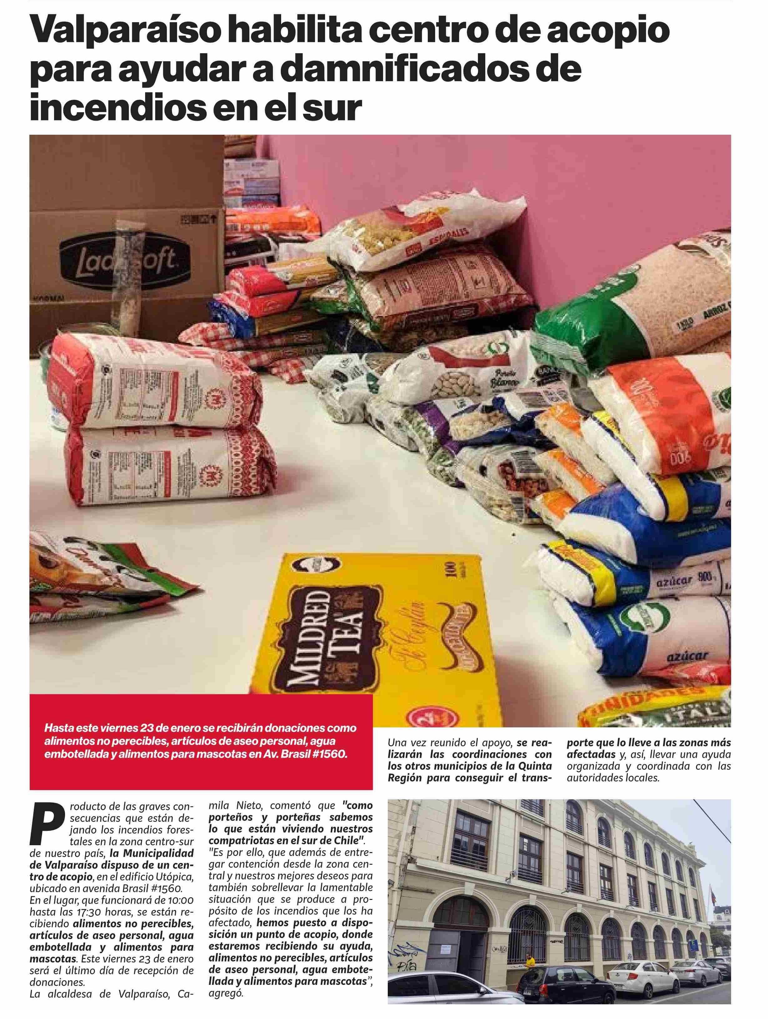 Valparaíso habilita centro de acopio para ayudar a damnificados de incendios en el sur