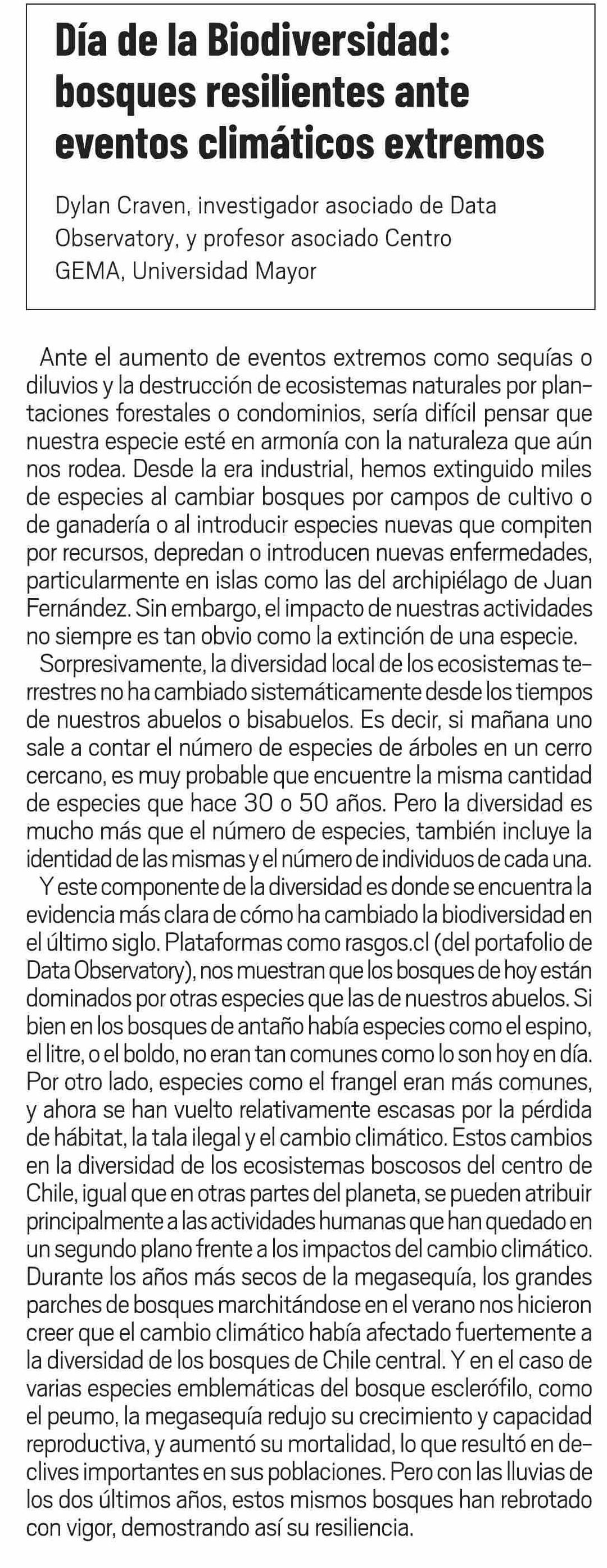 COLUMNAS DE OPINIÓN: Día de la Biodiversidad: bosques resilientes ante eventos climáticos extremos