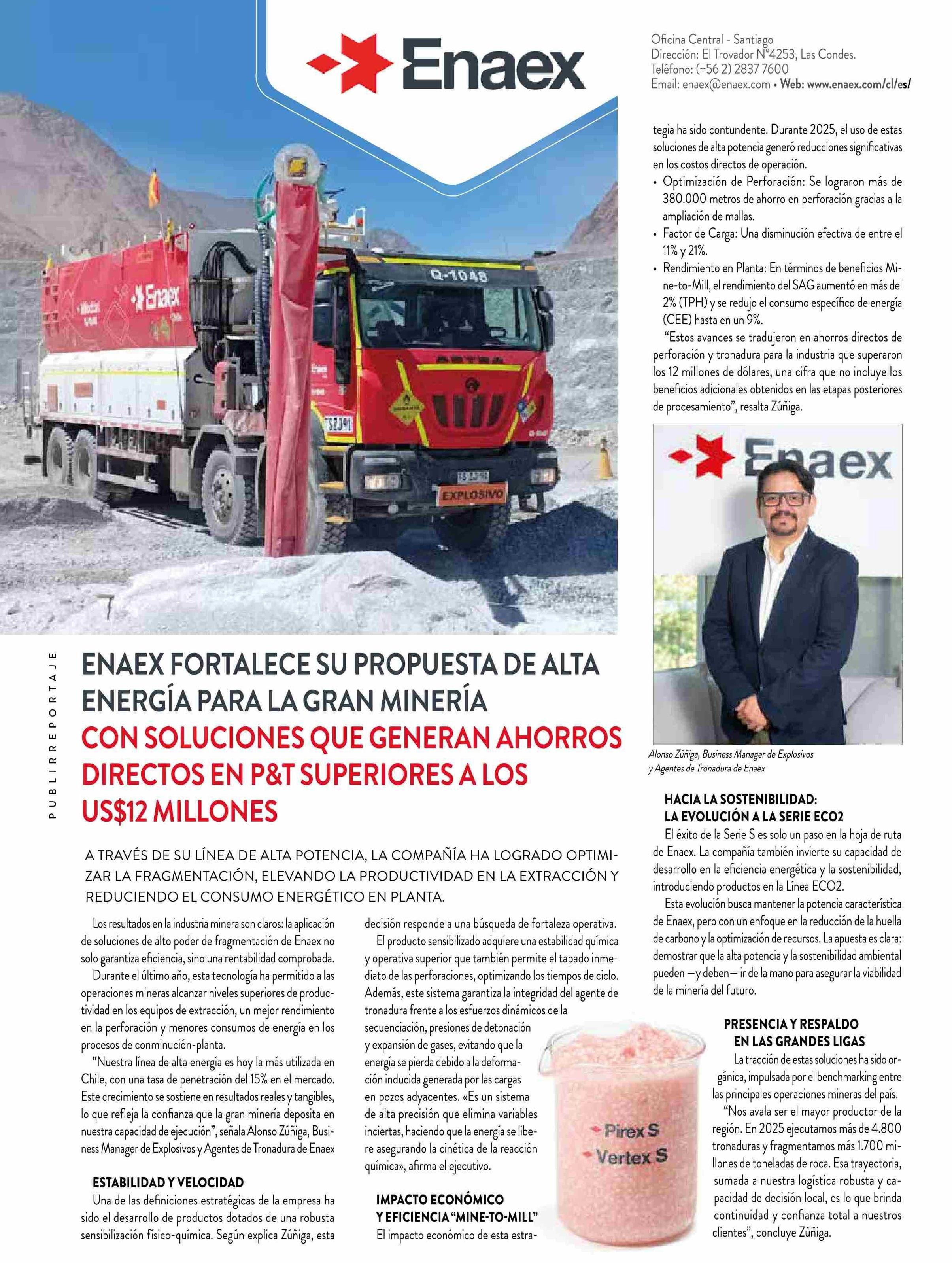 Título: ENAEX FORTALECE SU PROPUESTA DE ALTA ENERGÍA PARA LA GRAN MINERÍA CON SOLUCIONES QUE GENERAN AHORROS DIRECTOS EN P8T SUPERIORES A LOS US$12 MILLONES