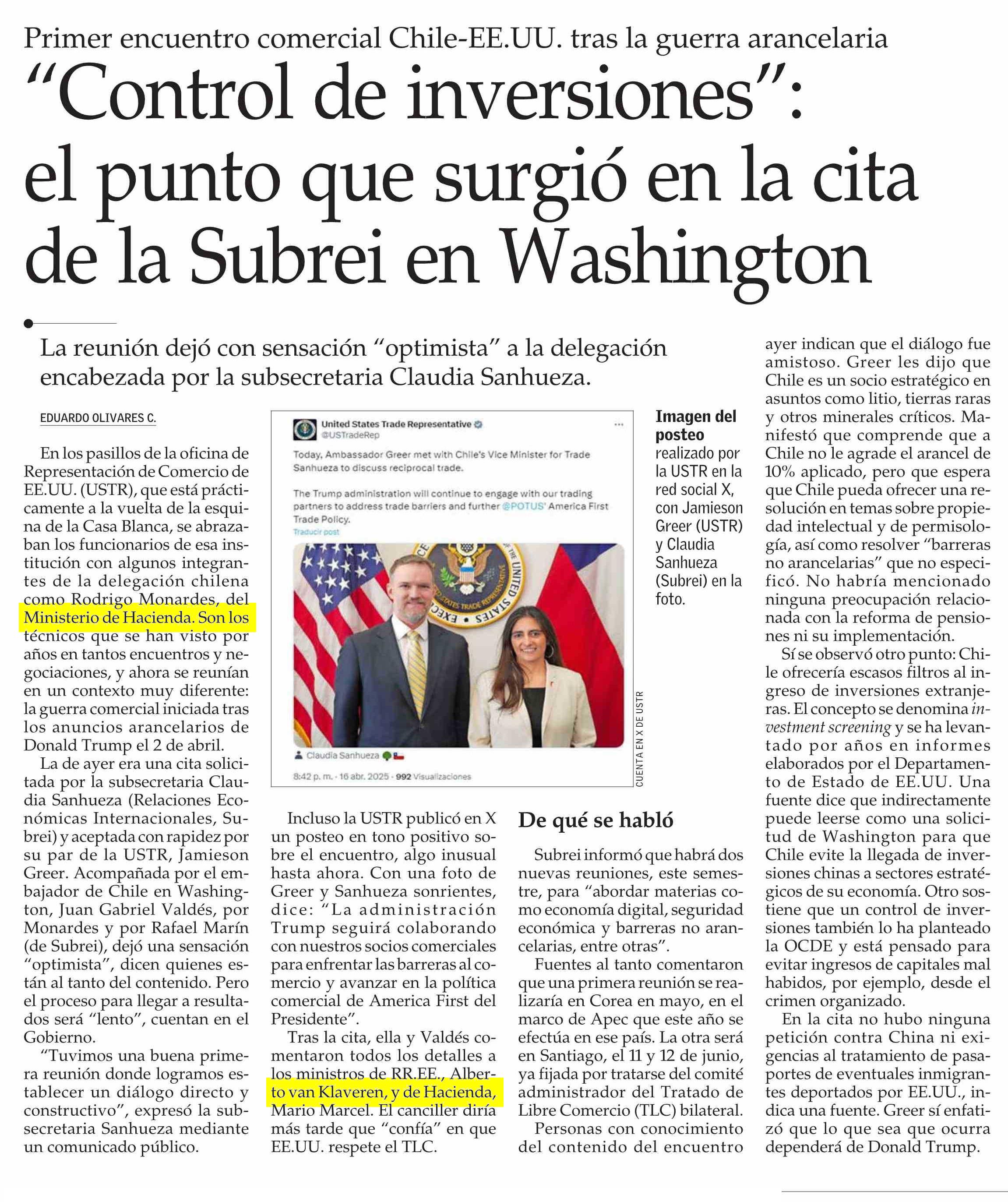 "Control de inversiones": el punto que surgió en la cita de la Subrei en Washington