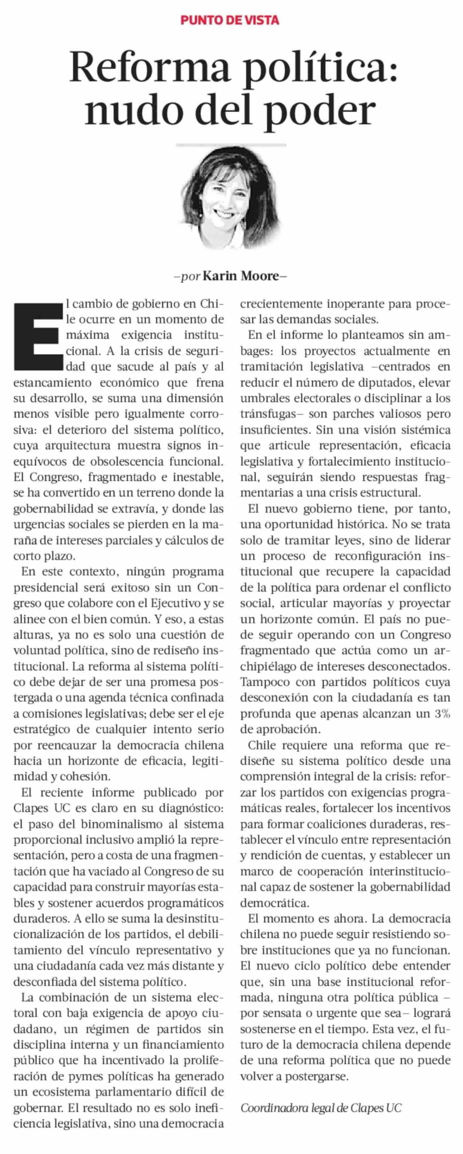 Columnas de Opinión: Reforma política: nudo del poder