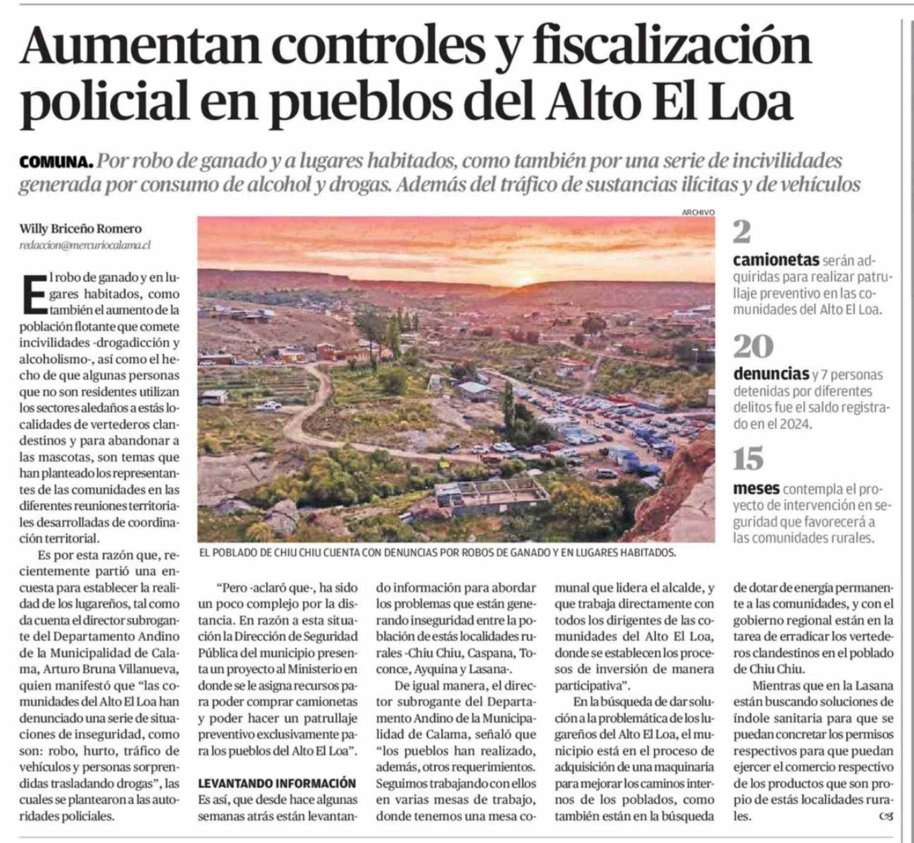 Aumentan controles y fiscalización policial en pueblos del Alto El Loa
