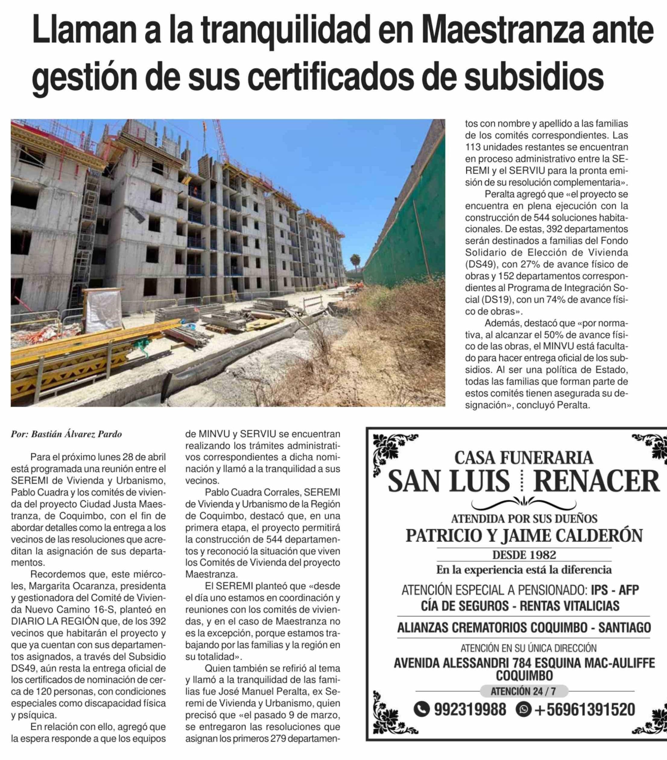 Llaman a la tranquilidad en Maestranza ante gestión de sus certificados de subsidios