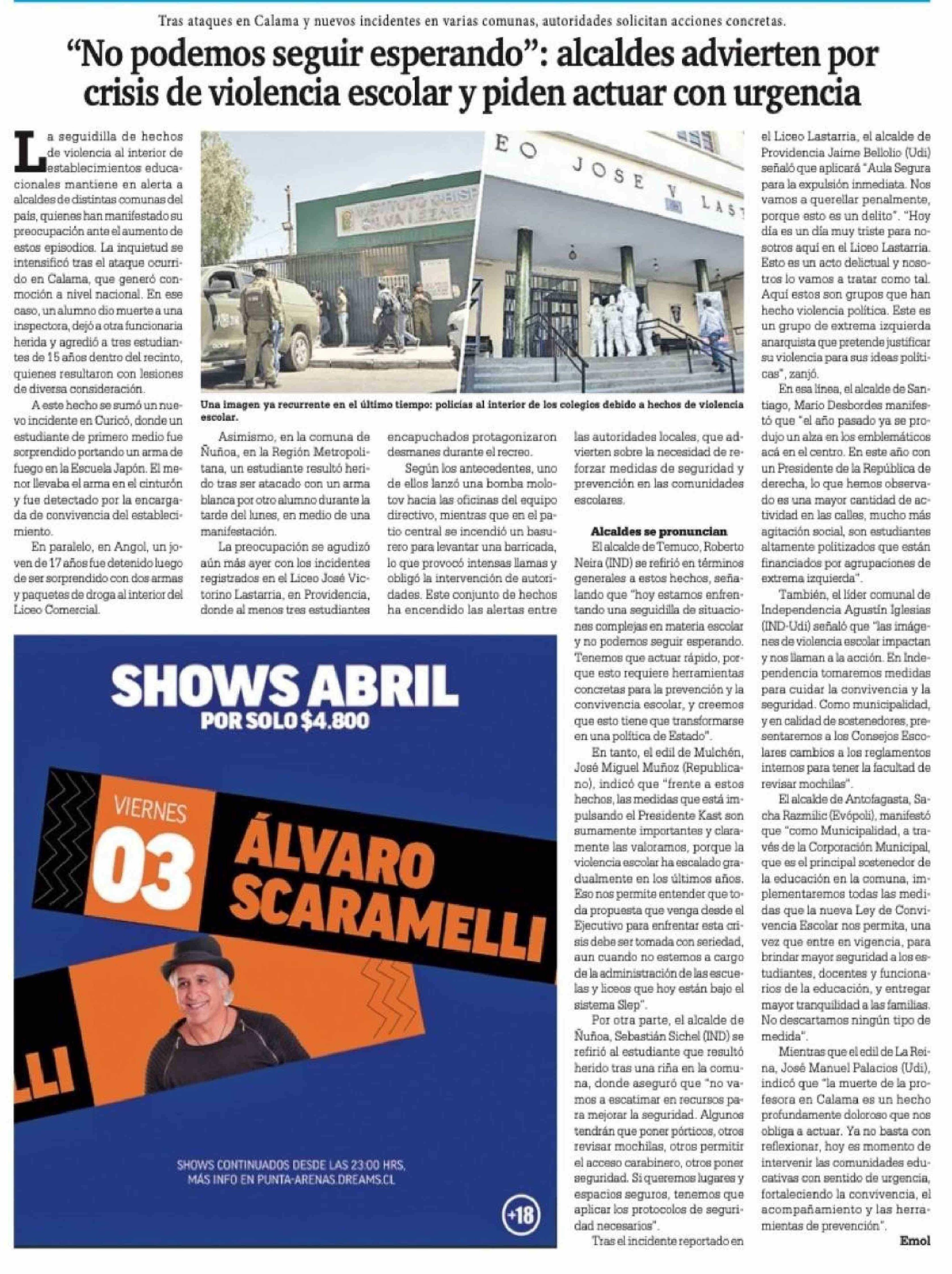 Título: "No podemos seguir esperando": alcaldes advierten por crisis de violencia escolar y piden actuar con urgencia