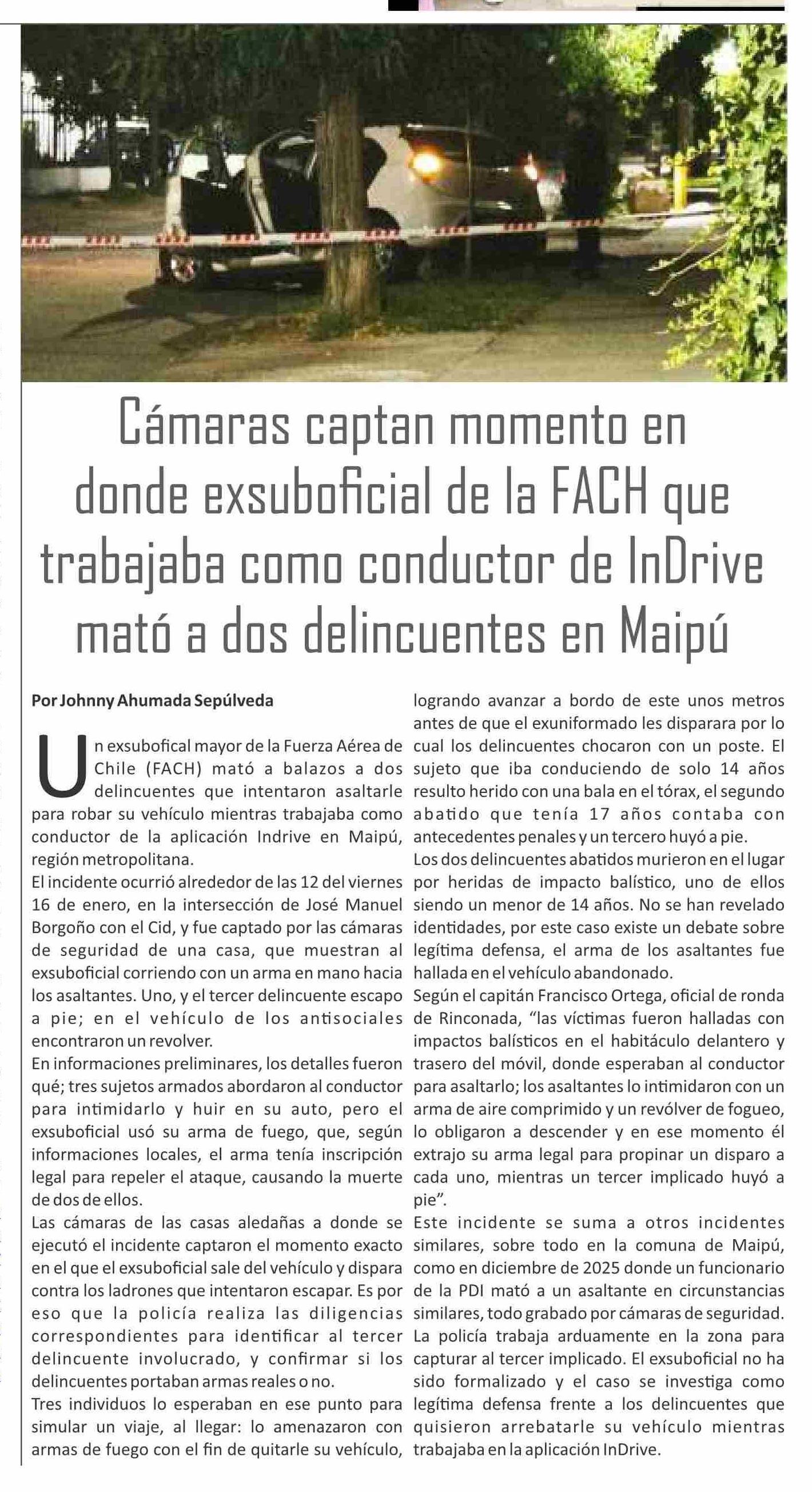 Cámaras captan momento en donde exsuboficial de la FACH que trabajaba como conductor de InDrive mató a dos delincuentes en Maipú