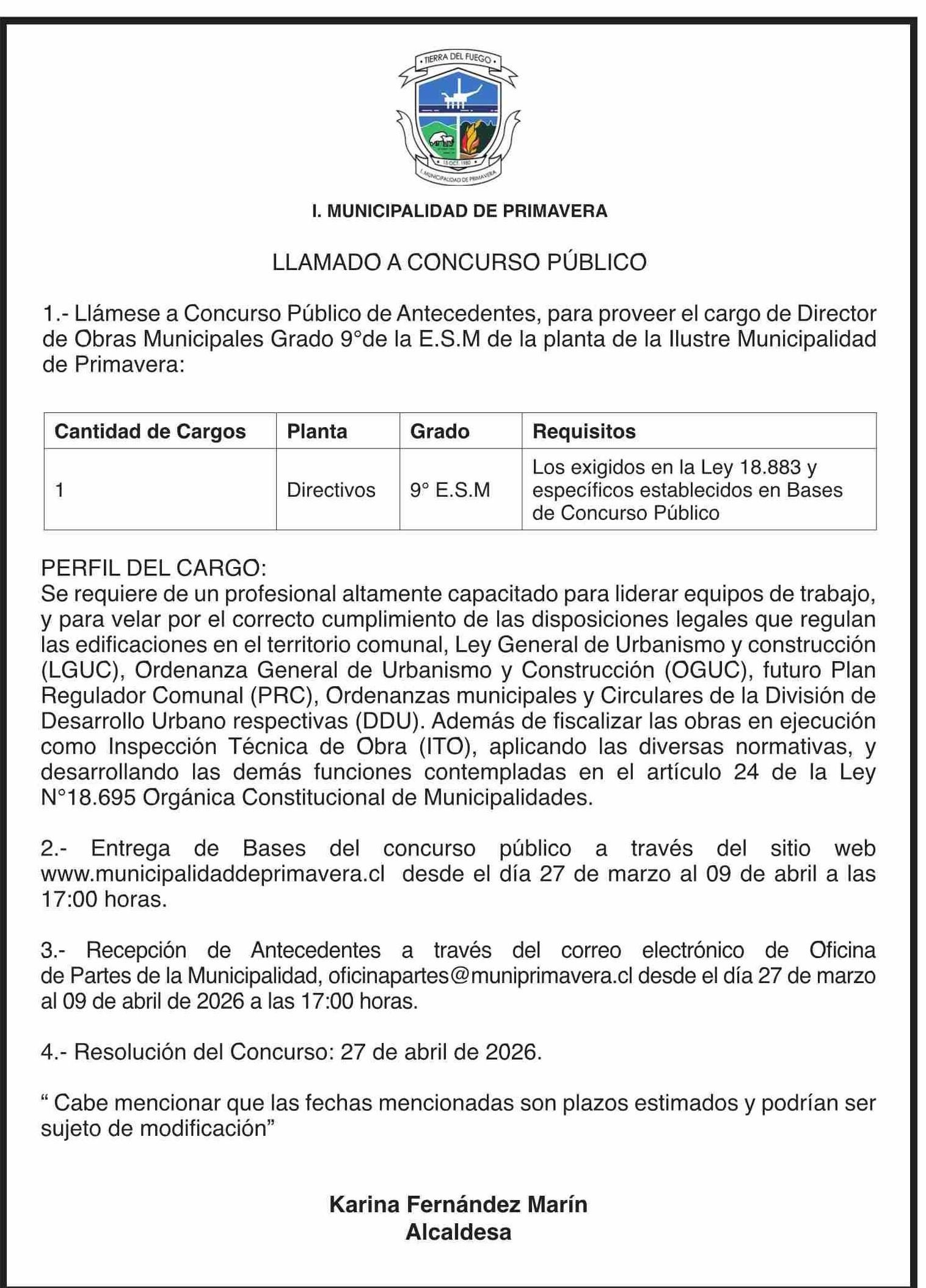 AVISO LICITACIONES: LLAMADO A CONCURSO PÚBLICO
