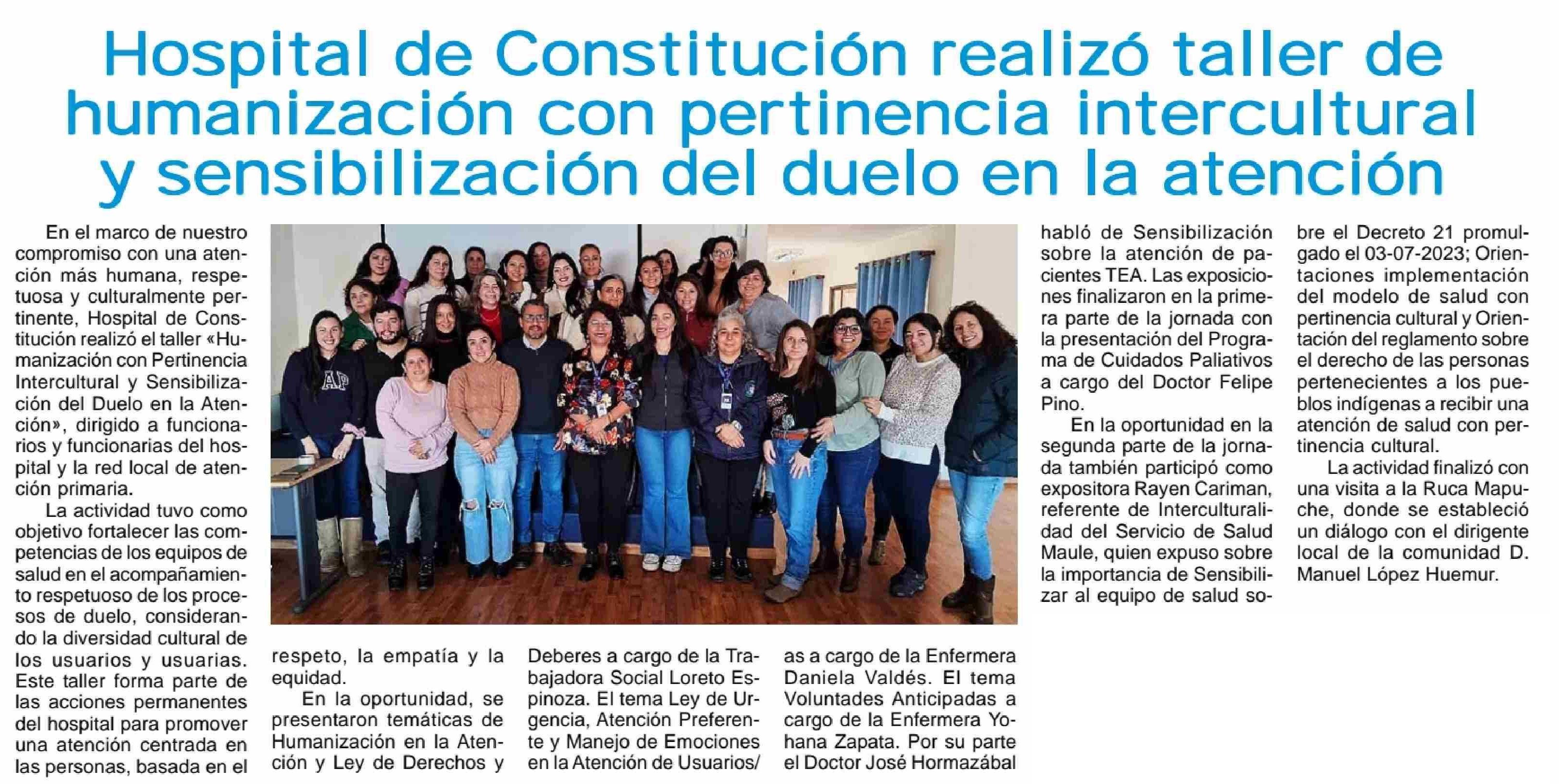 Hospital de Constitución realizó taller de humanización con pertinencia intercultural y sensibilización del duelo en la atención
